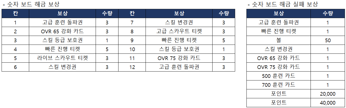 ※ 트레이드 시그니처팩은 최초 숫자 보드판 완성 시 1회만 지급됩니다.