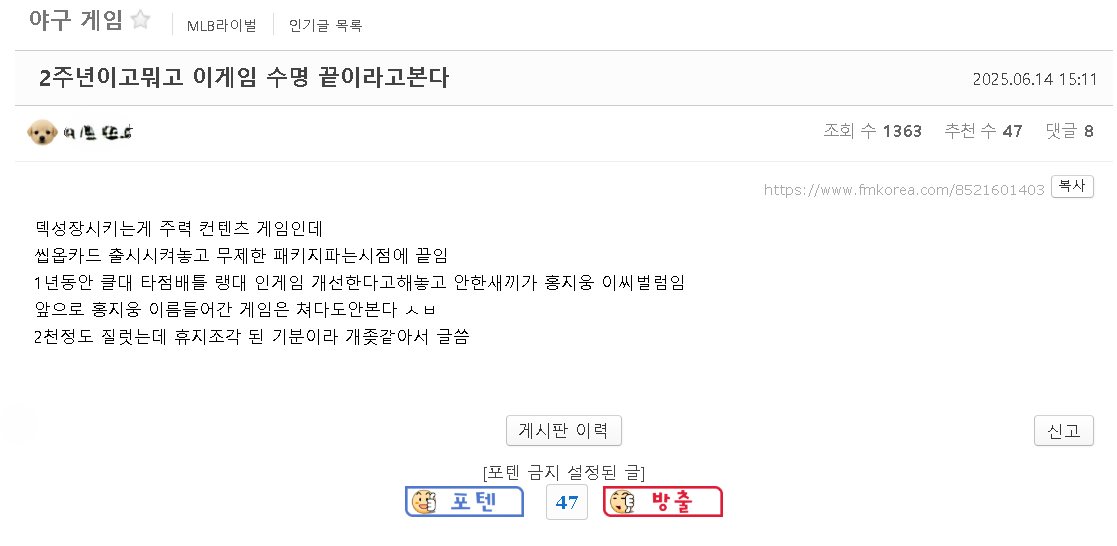 자유게시판 이겜 현재 커뮤니티 실유저들 평가 Ericrocidini9152 2025-06-14 07:24 484 0 공유 공유 URL 복사 페이스북 왓츠앱 카카오톡 라인 레딧 닫기 공유 4 1 댓글 0 삭제 이미지첨부 0/3000 등록