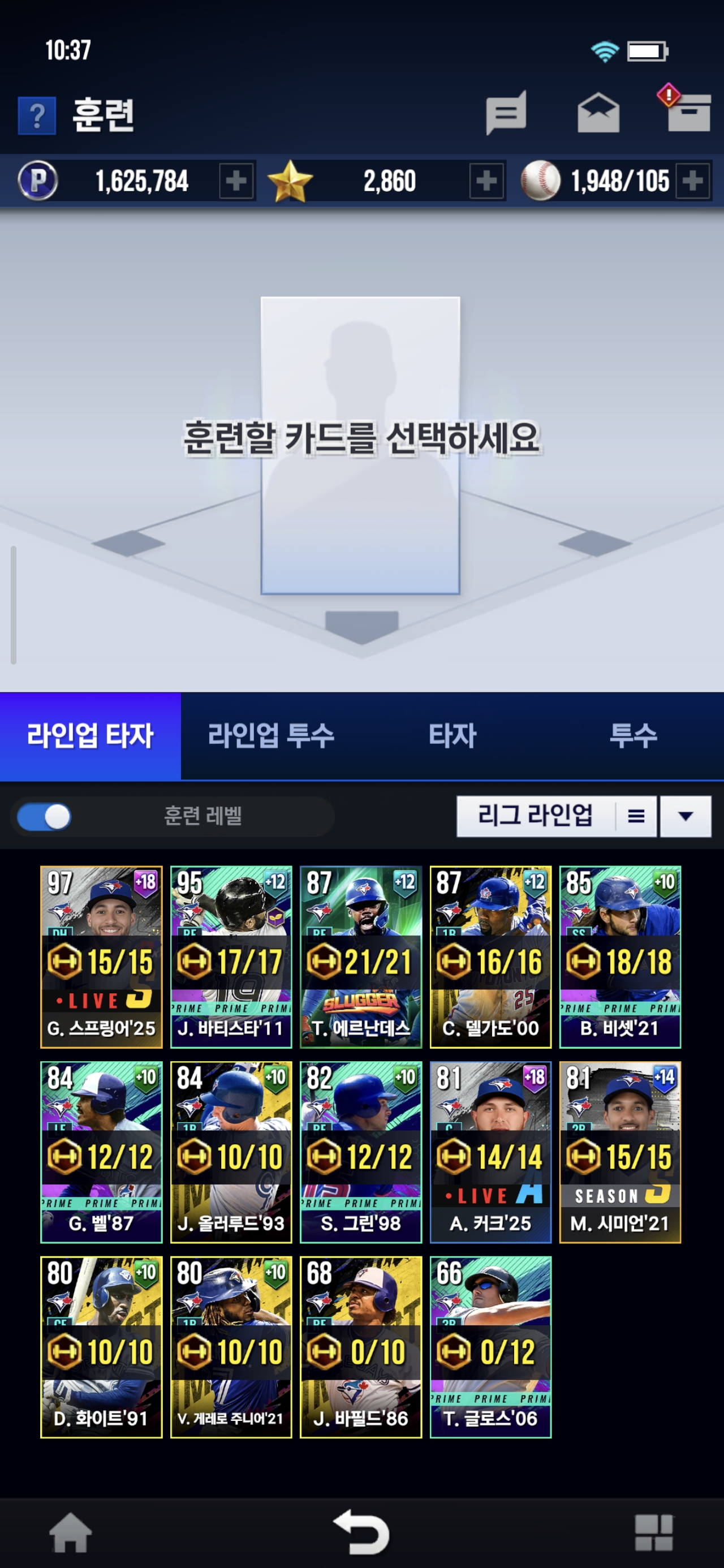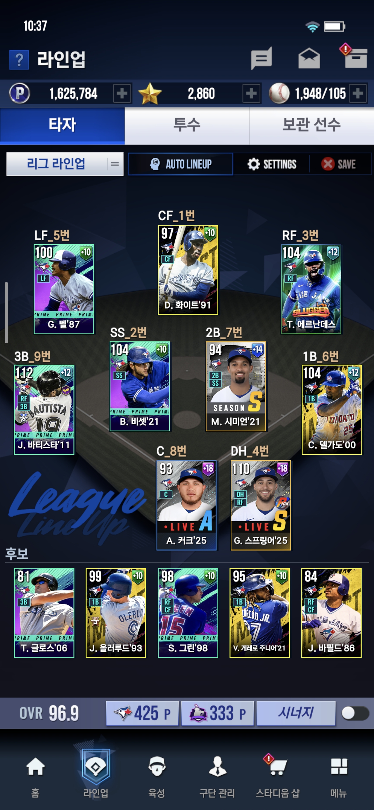 주력선수(무료 시그니처 승급)는 바티스타로 하고있습니다
