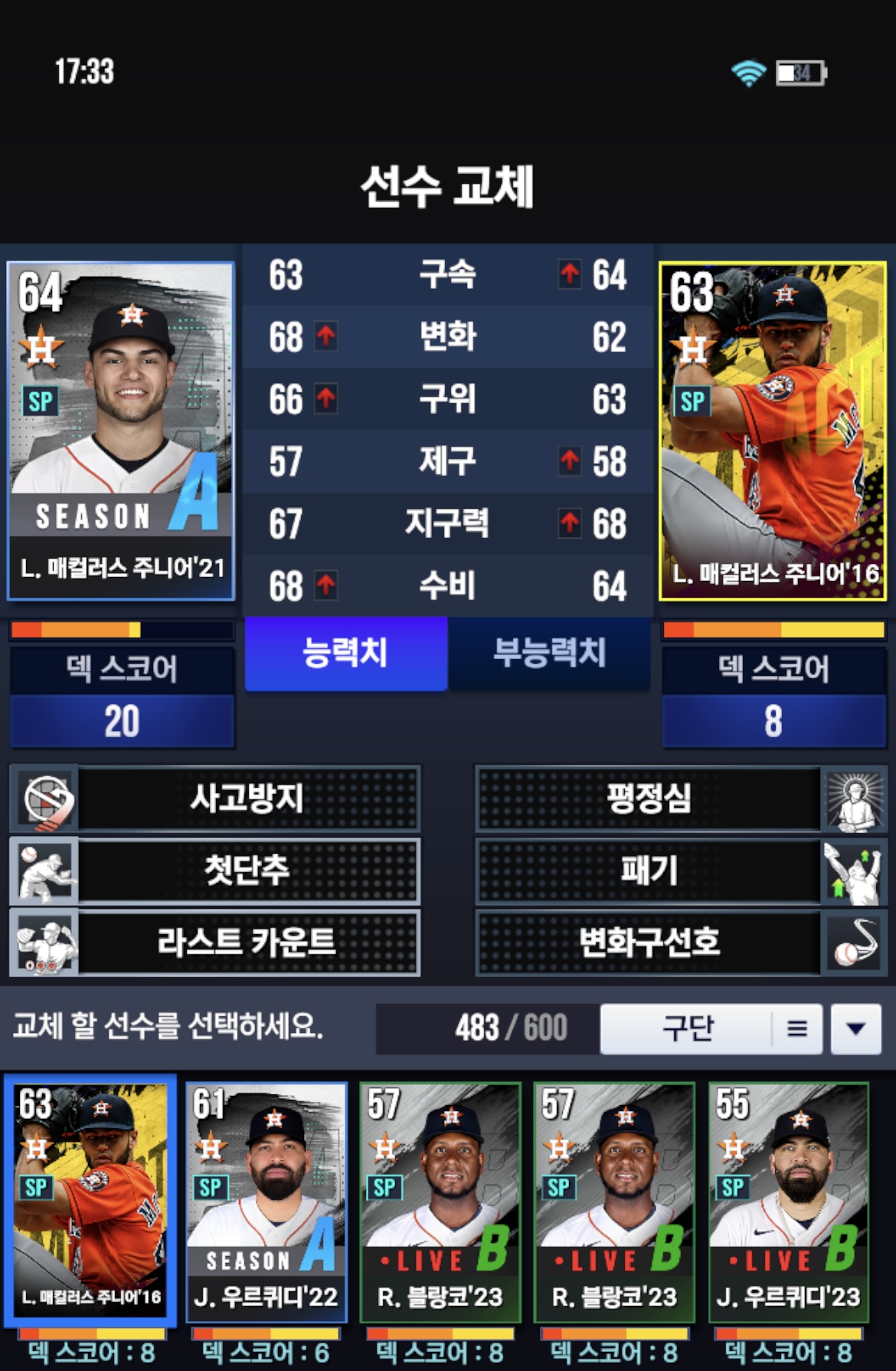 휴스턴 게릿콜 벌랜더 발데스 다음 4/5선발로 하비에르랑 같이 쓰려는데 16 임팩트랑 21시즌카랑 어떤 걸 쓸까요?