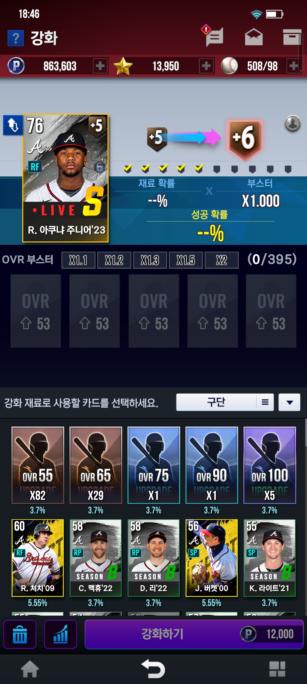 보유선수에는 있는데 강화 텝에서 동일선수로 안 뜨네요...