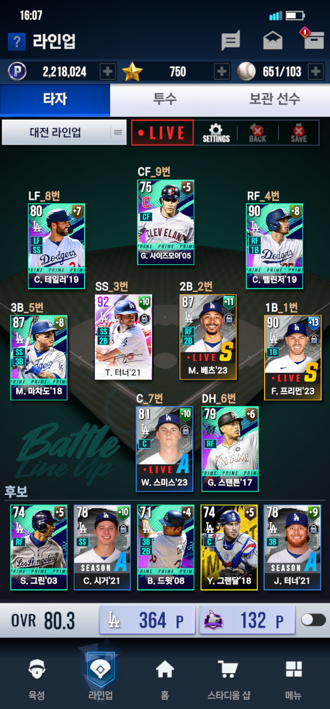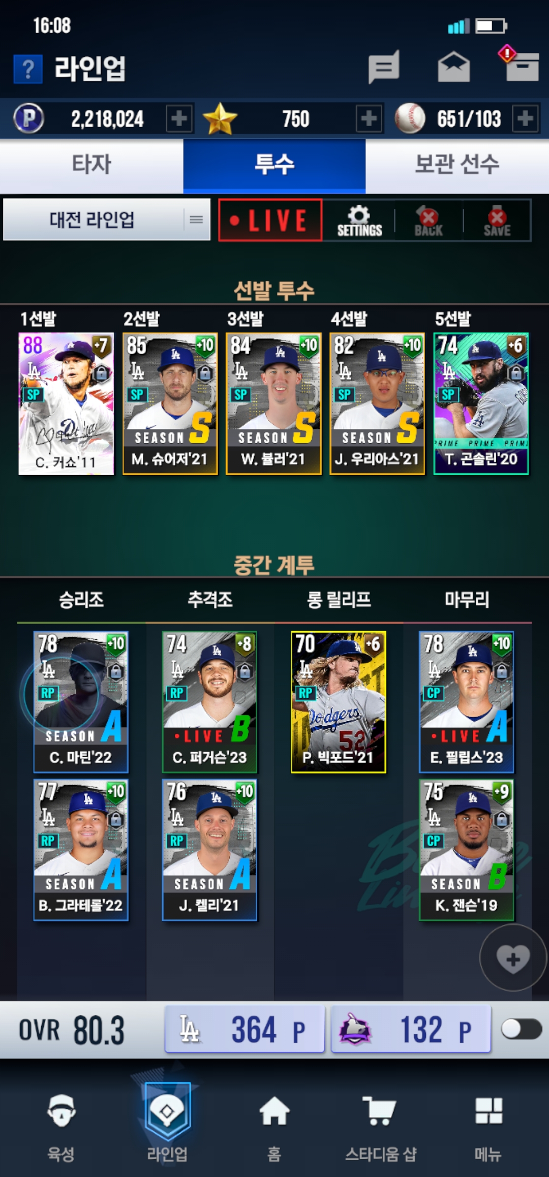 중상위 클럽들어가봐요 다저스팀 오버롤80입니다