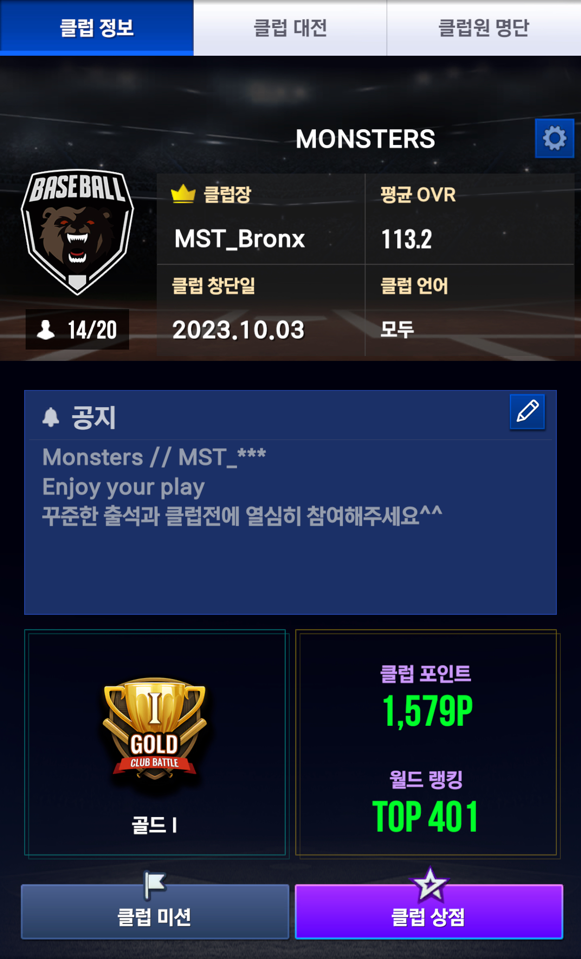 단, 클럽원으로서 성실히 접속 및 클럽전 참여해 주시면 좋겠습니다^^