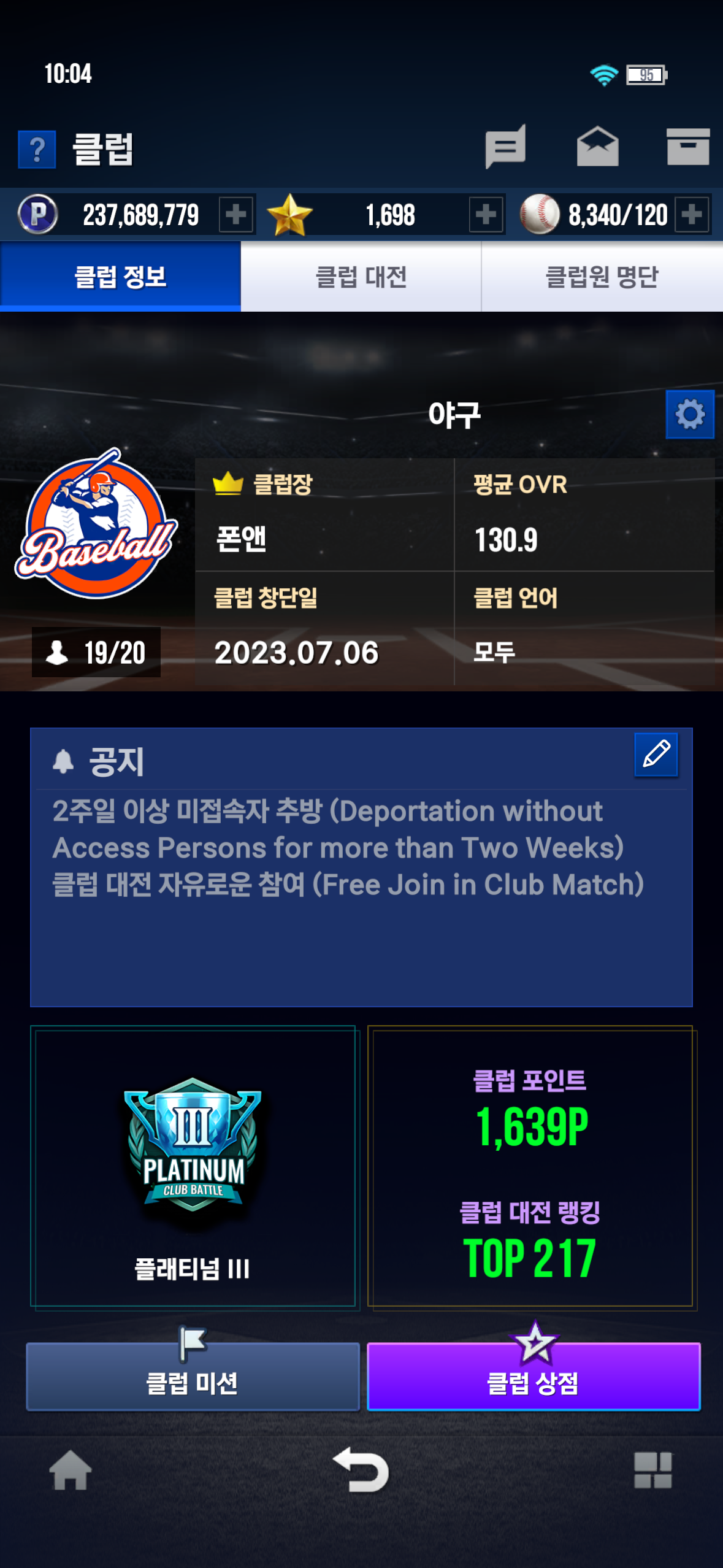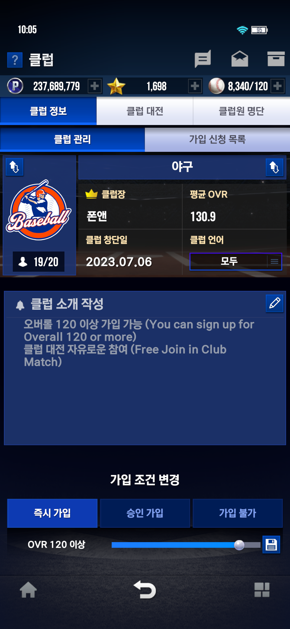 클럽 가입 기준 : 오버롤 120 이상 (인원 풀 일시 승인 가입)