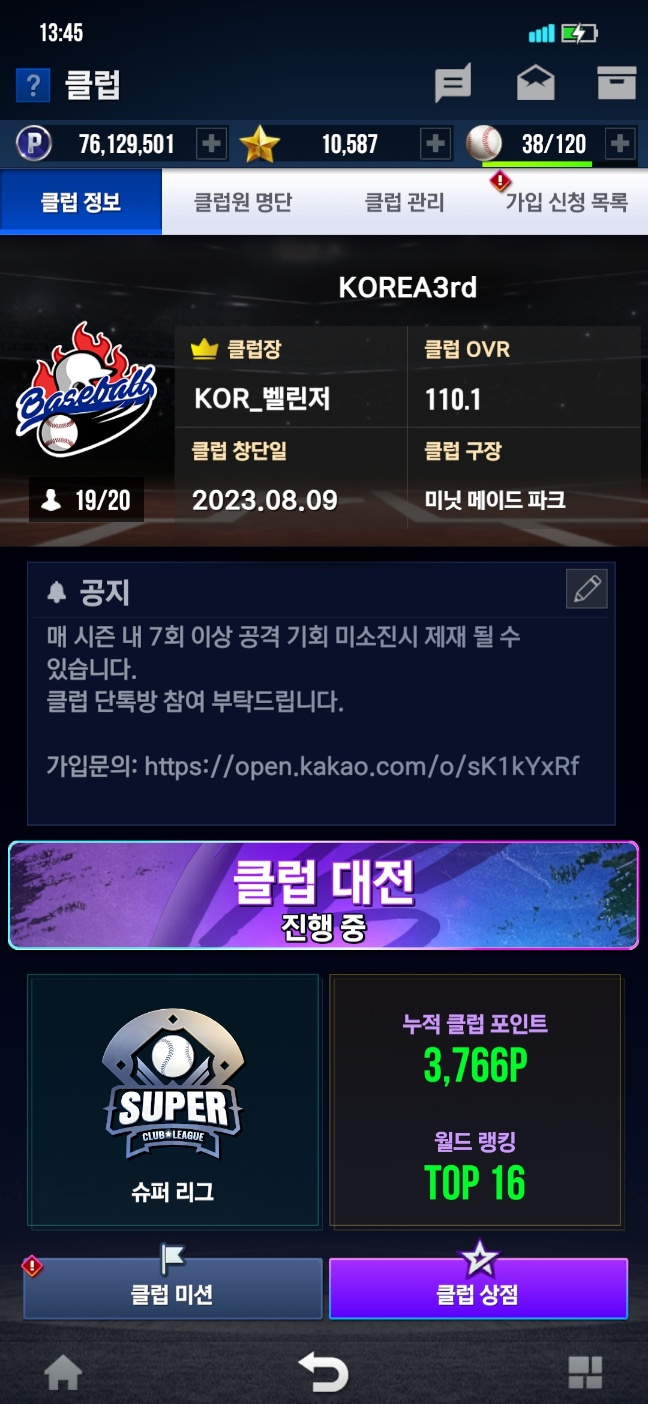 [KOREA3rd 클럽 모집중 18/20] OVR 109 이상 클럽원 모집 합니다~
