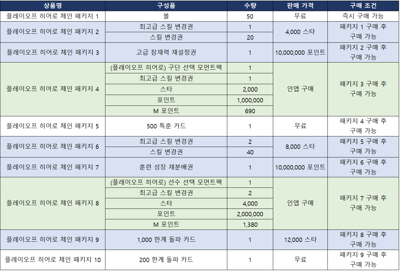■ 플레이오프 히어로 체인 패키지 판매 안내
