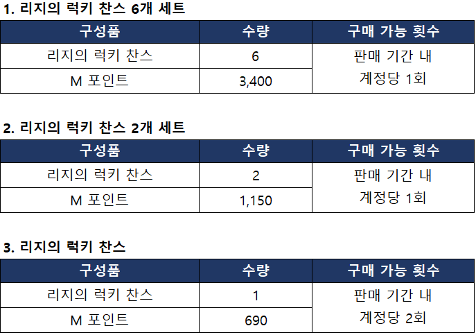 ■ 리지의 럭키 찬스 묶음 패키지 판매 안내