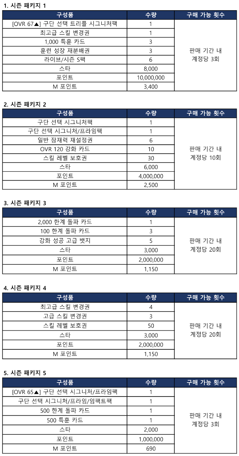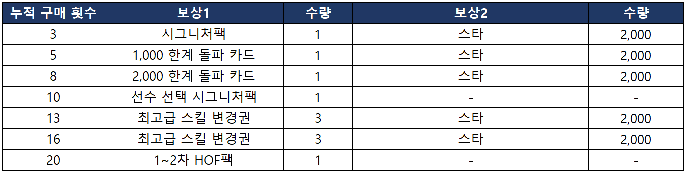 - 시즌 패키지 누적 구매 횟수에 따라 아래의 보상을 획득할 수 있습니다.