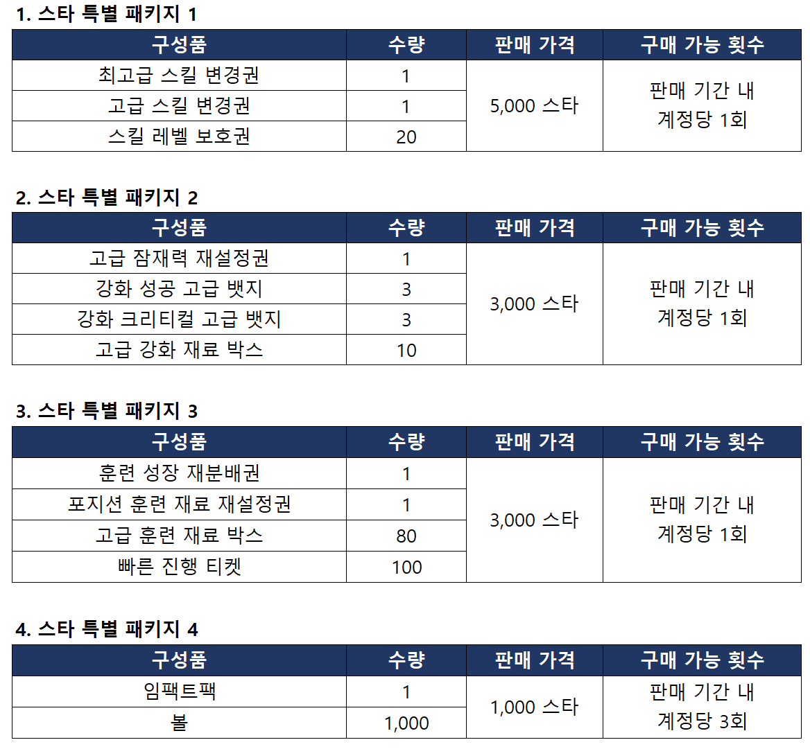 - 메인 화면 우측 하단 > 스타디움 샵 > 추천 > 프리미엄 탭에서 구매 가능