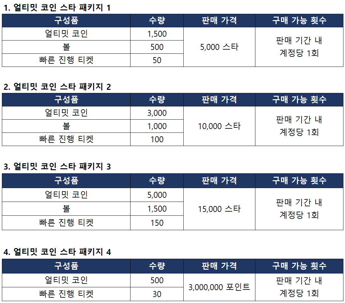 ■ 얼티밋 코인 스타 패키지 판매 안내