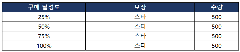 - 구매 달성도에 따라 아래의 보상을 획득하실 수 있습니다.