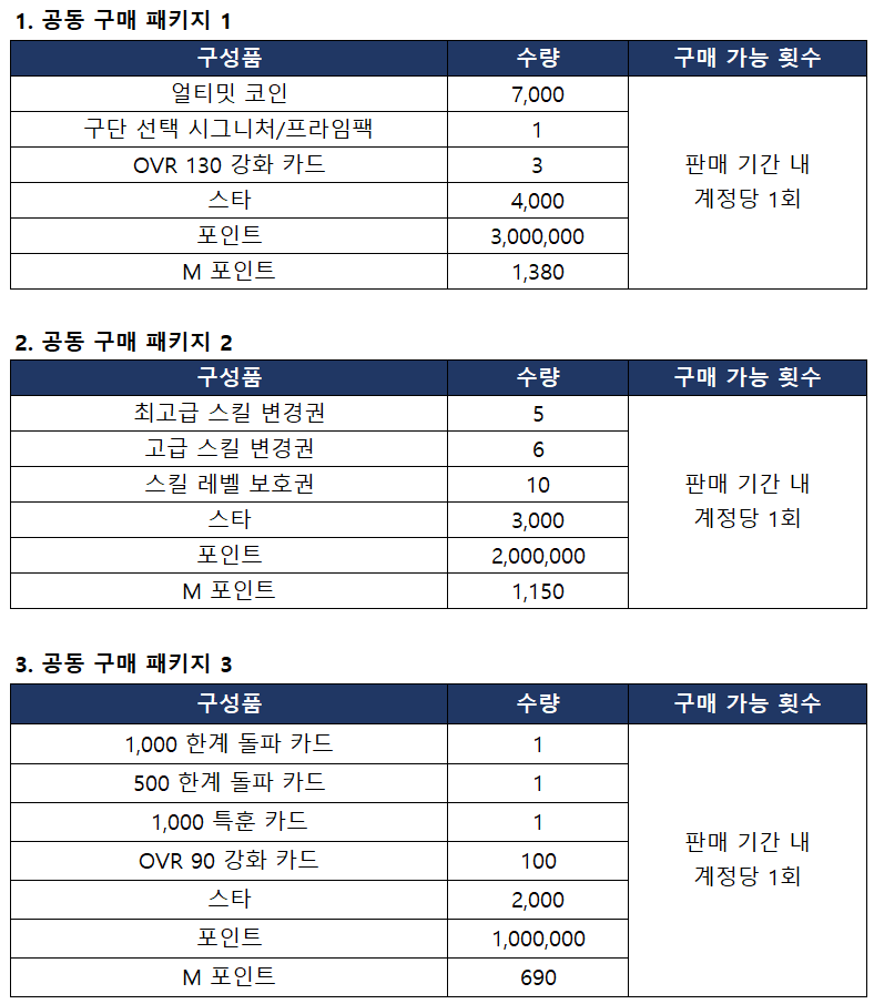 - 패키지가 판매된 수량을 집계하여 구매하신 구단주님께 추가적인 보상을 드리는 상품