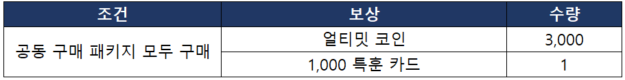 - 공동 구매 패키지 1, 2, 3번을 모두 구매하시면 추가 보상을 드립니다.