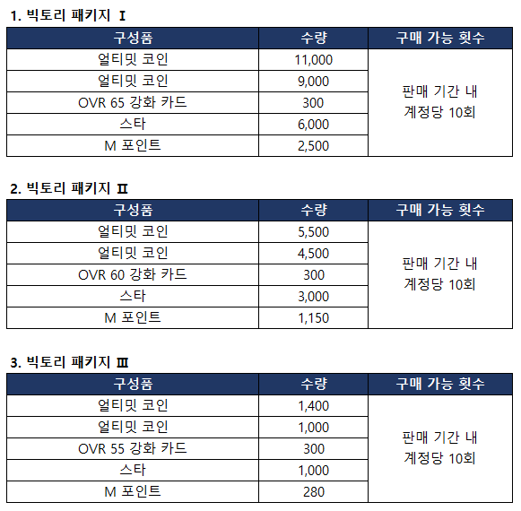 ■ 빅토리 패키지 판매 안내