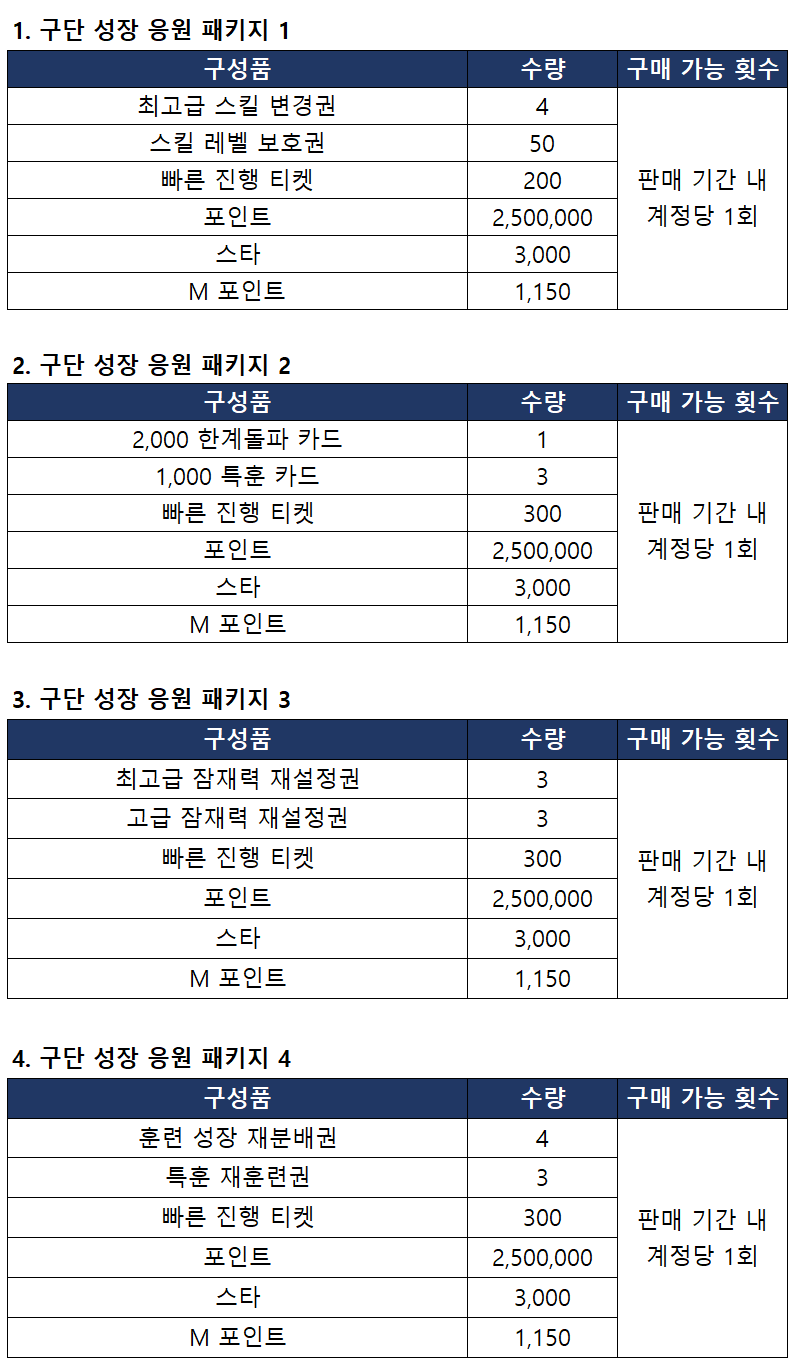 ▼ 구단 성장 응원 패키지 누적 구매 보상