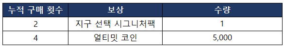 - 패키지 누적 구매 횟수에 따라 아래의 보상을 획득할 수 있습니다.