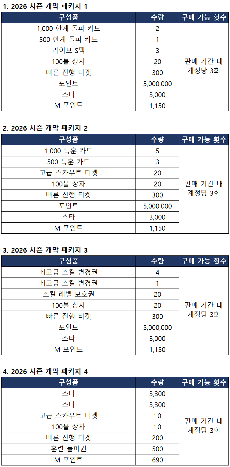 ■ 2026 시즌 개막 패키지 판매 안내