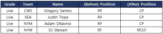 - 5차 Live 업데이트 시 일부 선수의 포지션이 잘못 적용 되어 수정됩니다.