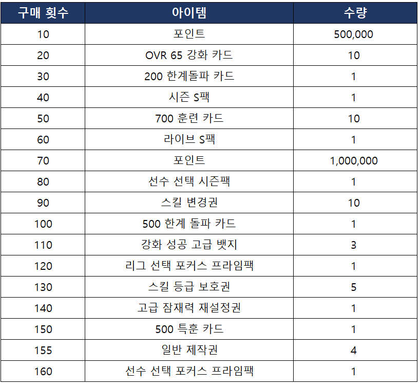 ※ 누적 구매 보상 중 ‘일반 제작권’은 반복 보상 수령 시 ‘6개’를 획득하실 수 있습니다.