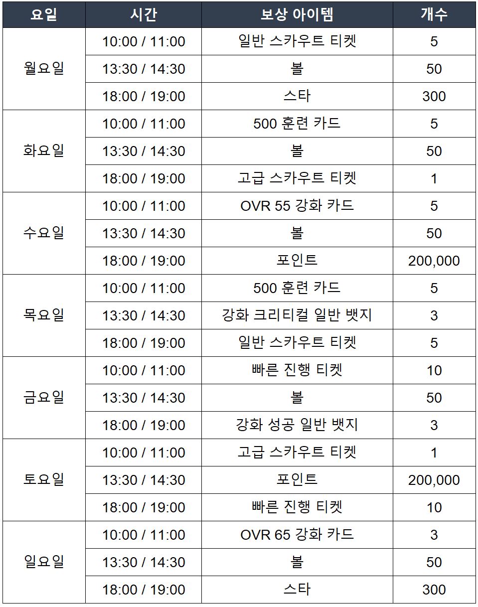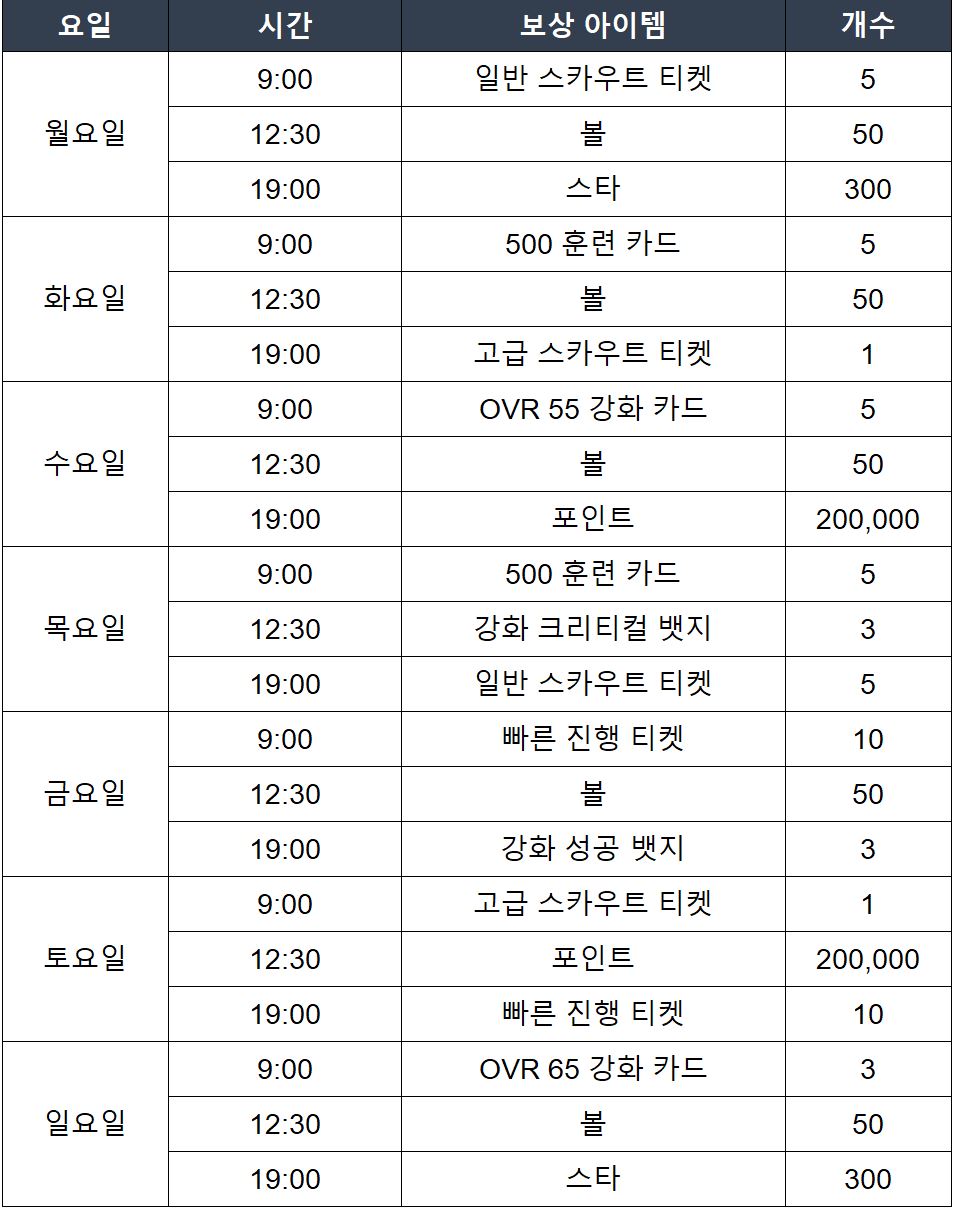 구단주님들의 성장을 도와줄 데일리 정기 푸시 접속 보상 관련하여 안내드립니다.