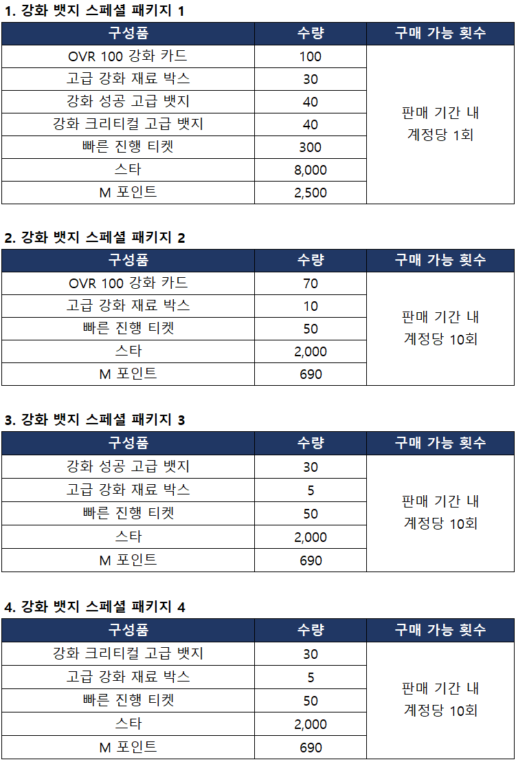 ■ 강화 뱃지 스페셜 패키지 판매 안내