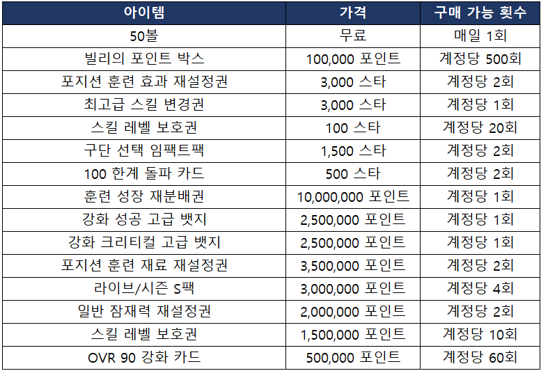 ■ 스프링 트레이닝 이벤트 상점 상품 리스트