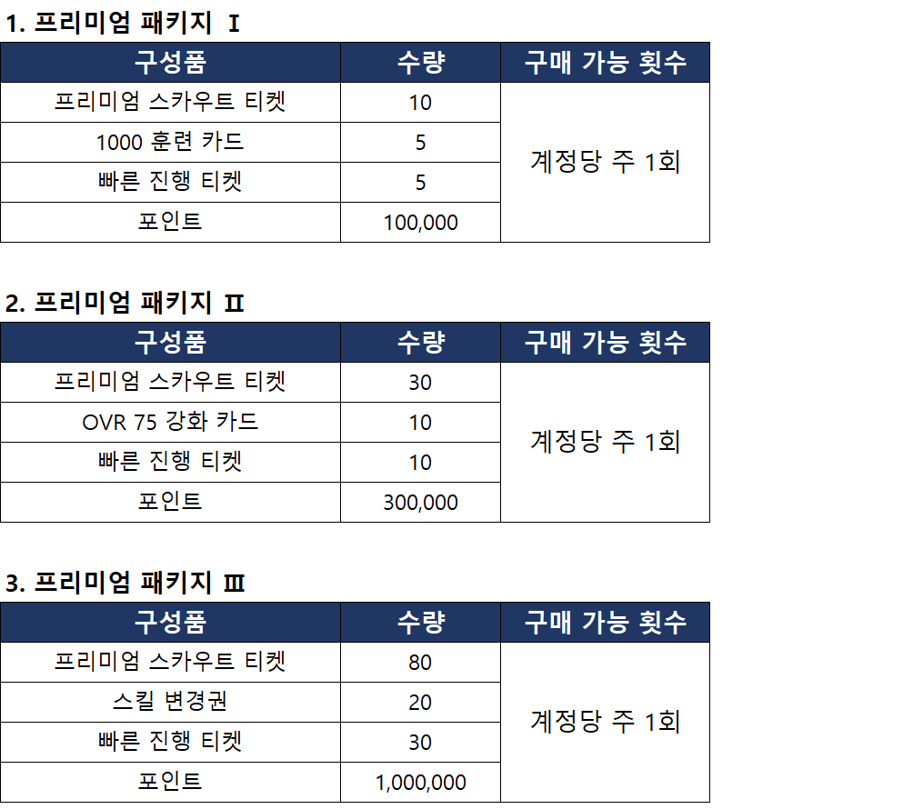 - 메인 화면 우측 하단 > 스타디움 샵 > 추천 > 프리미엄 탭에서 구매 가능