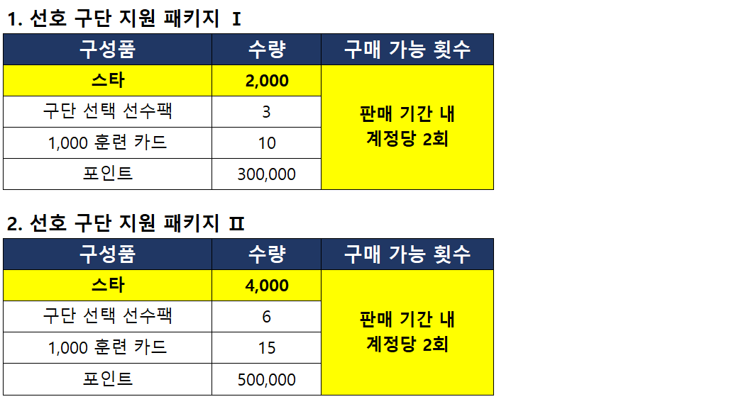 선호 구단 지원 패키지의 구성품 일부가 개선되고,