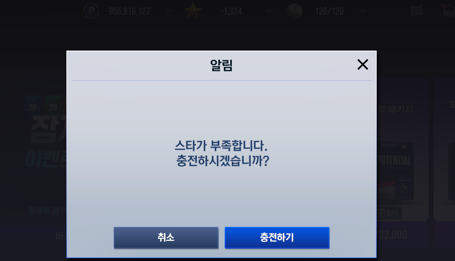 스타 음수인 상태에서 잠재력 이벤트 상점의 (무료)잠재력노트박스를 구매 불가한 버그