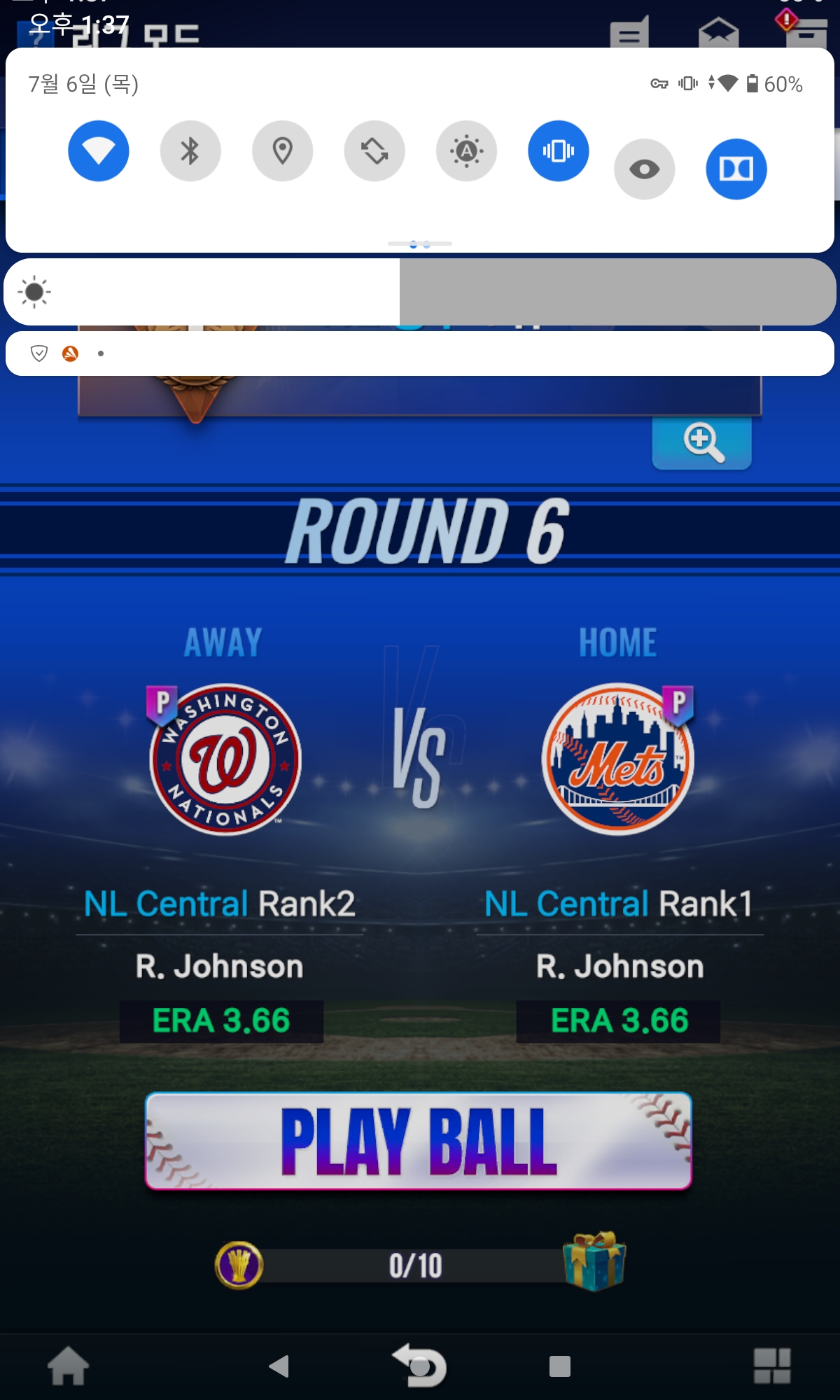 플레이 볼을 누르고 그 다음 화면에서 경기로 넘어가지 않습니다.