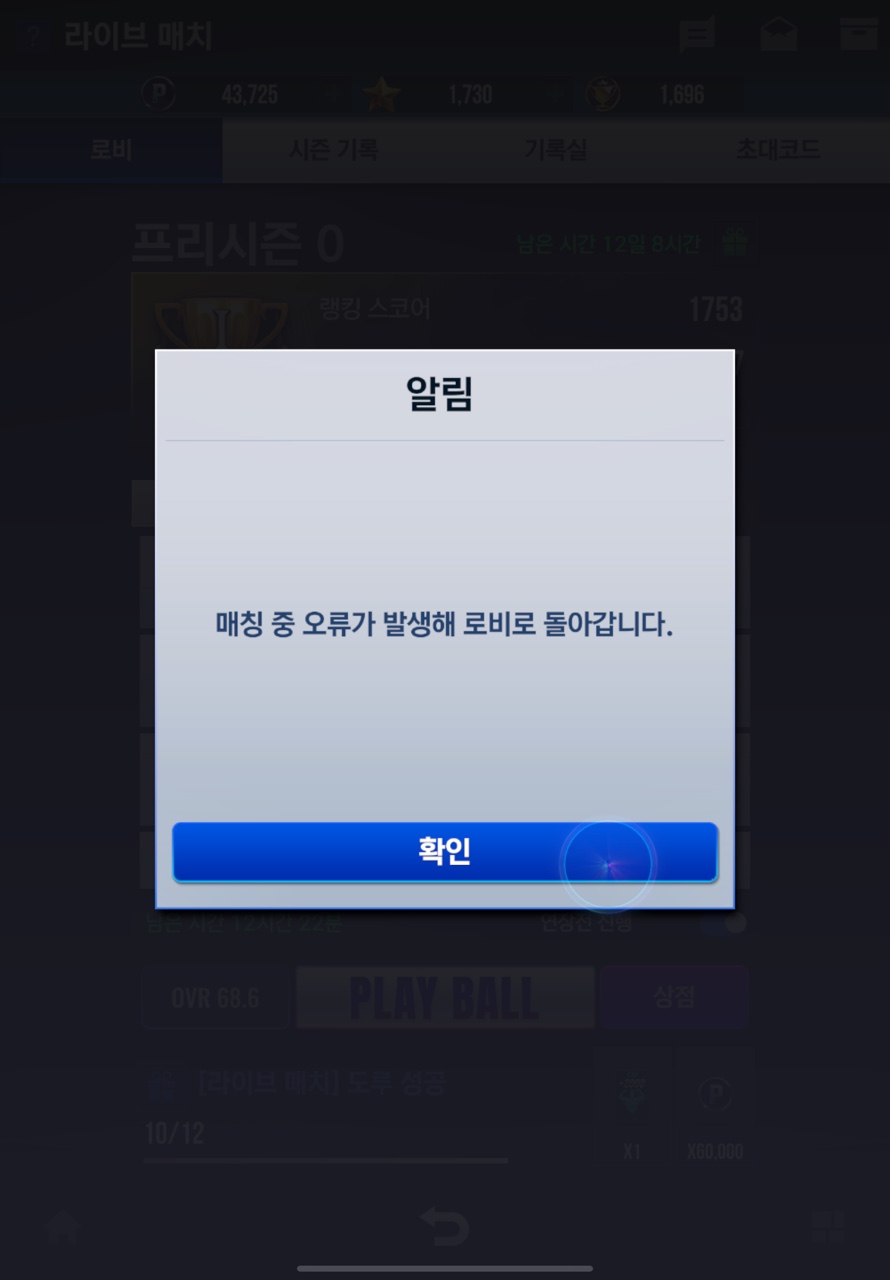 점검 후에 라이브매치를 하려는데 진행이 안되네요