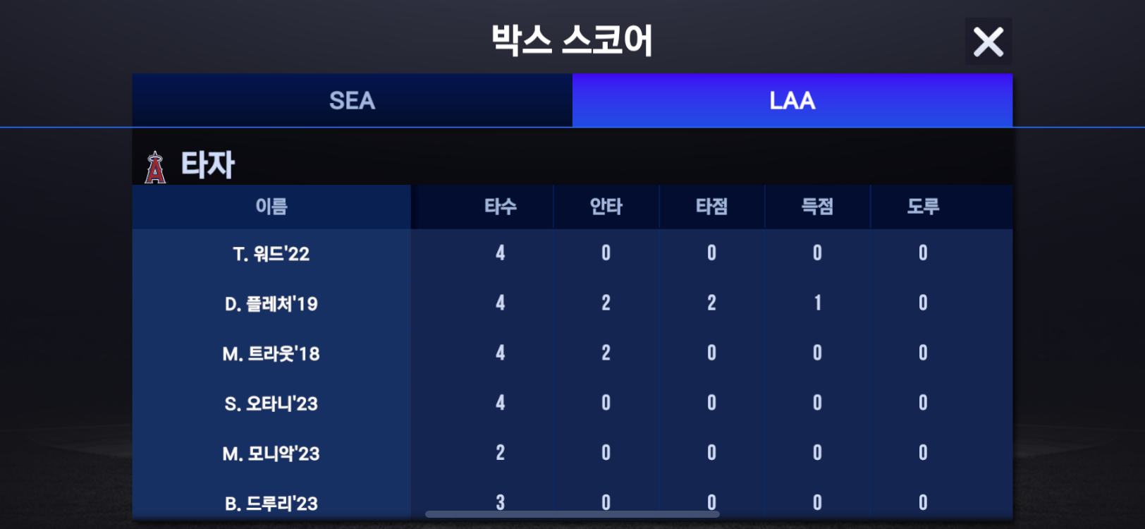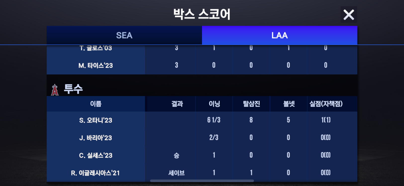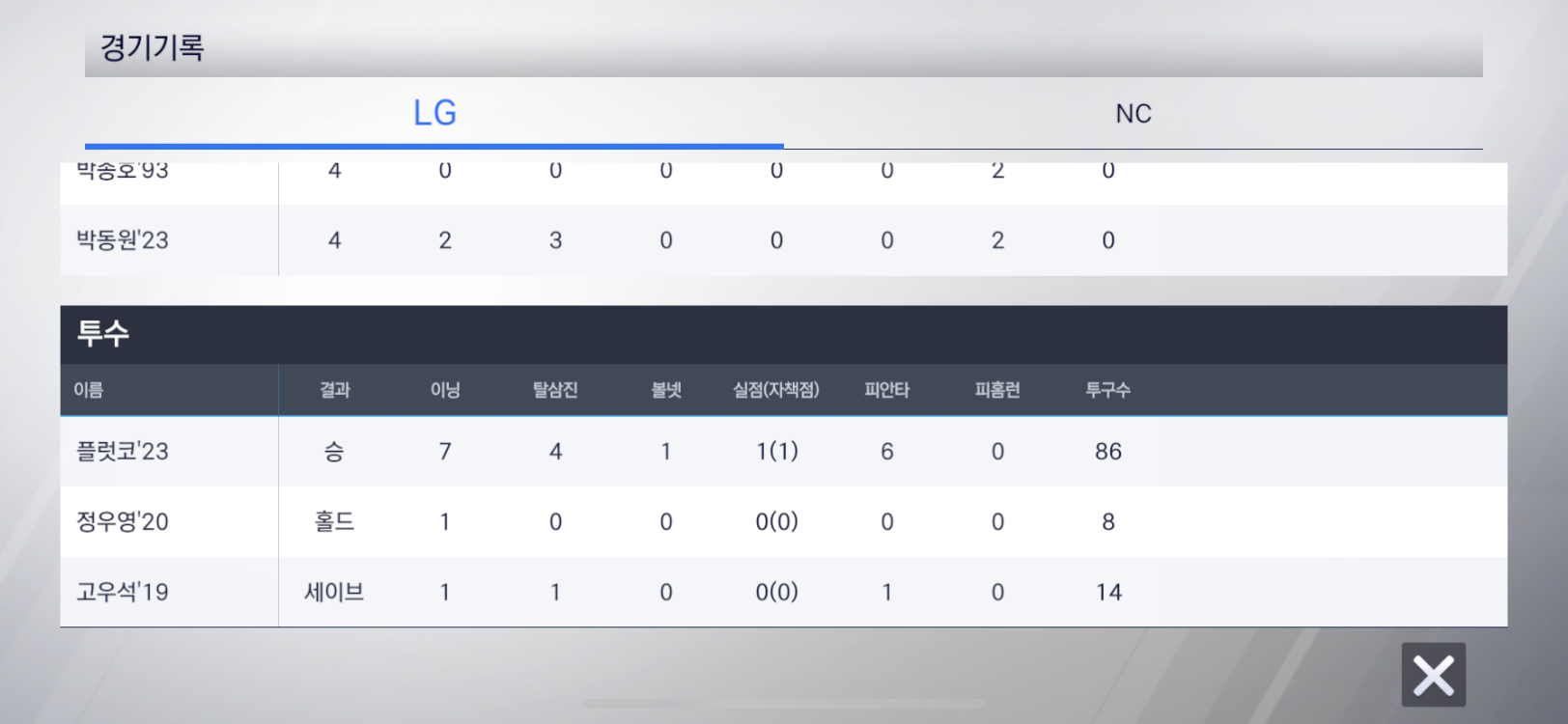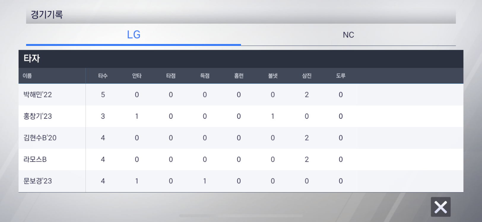 경기결과에 홈런이 없는게 아쉽습니다.