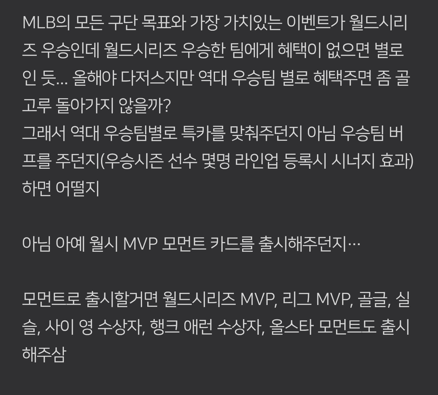 건의 사항 월드시리즈 우승 기념 World-SummitGame 2025-11-13 05:44 76 1 공유 공유 URL 복사 페이스북 왓츠앱 카카오톡 라인 레딧 닫기 공유 0 0 댓글 1 삭제 이미지첨부 0/3000 등록