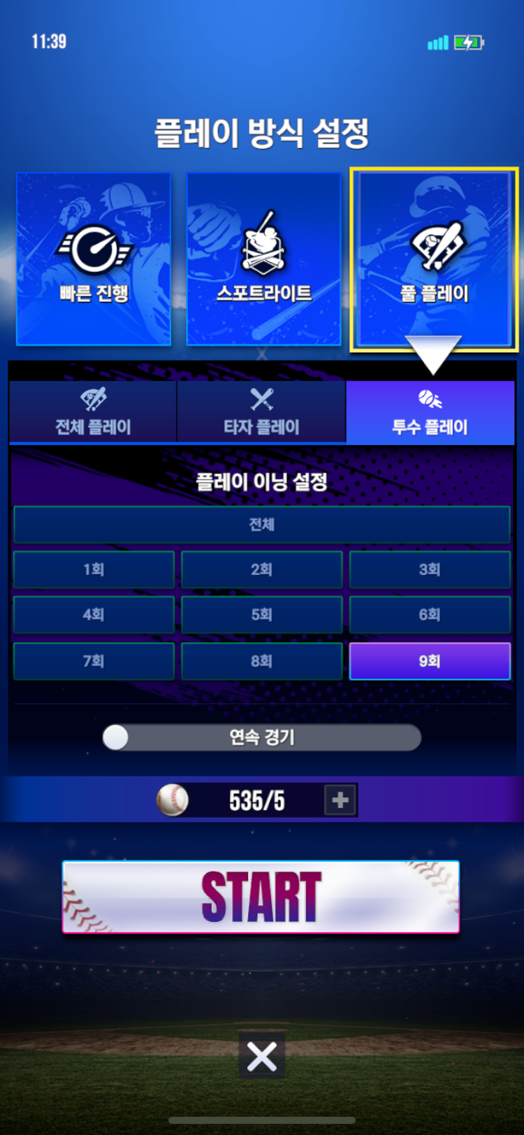 현재 스포트라이트 타자만 선택하게 되어있는데, 투수도 선택해서 할 수 있게 해줘봐요~풀플레이 투수모드 9회만 하려니 너무 오래 걸림. ㅠㅠ