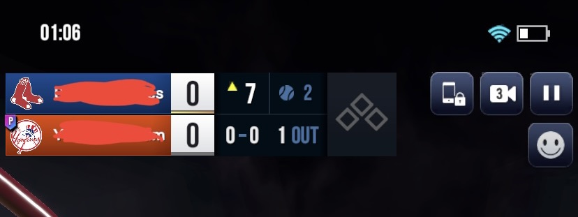 업데이트 전에는 이름 배경에 팀 로고가 크게 있어서 멋들어져 보였는데 지금은 그냥 색만 칠해져 플래시게임을 하는 것처럼 너무 단조로워졌습니다. 또, 두 줄로 바뀐 지금은 좁은 공간에 로고, 닉네임이 전부 들어가니 보기에 꽉 막혀 보여서 답답한 느낌을 줍니다. 저번에 일자로 된 모양이 더 예쁘고 세련되어 보입니다. 투구 수를 추가한 것은 너무 좋습니다. 저번 모양에 투구 수만 추가하는 식으로 업뎃해주세요
