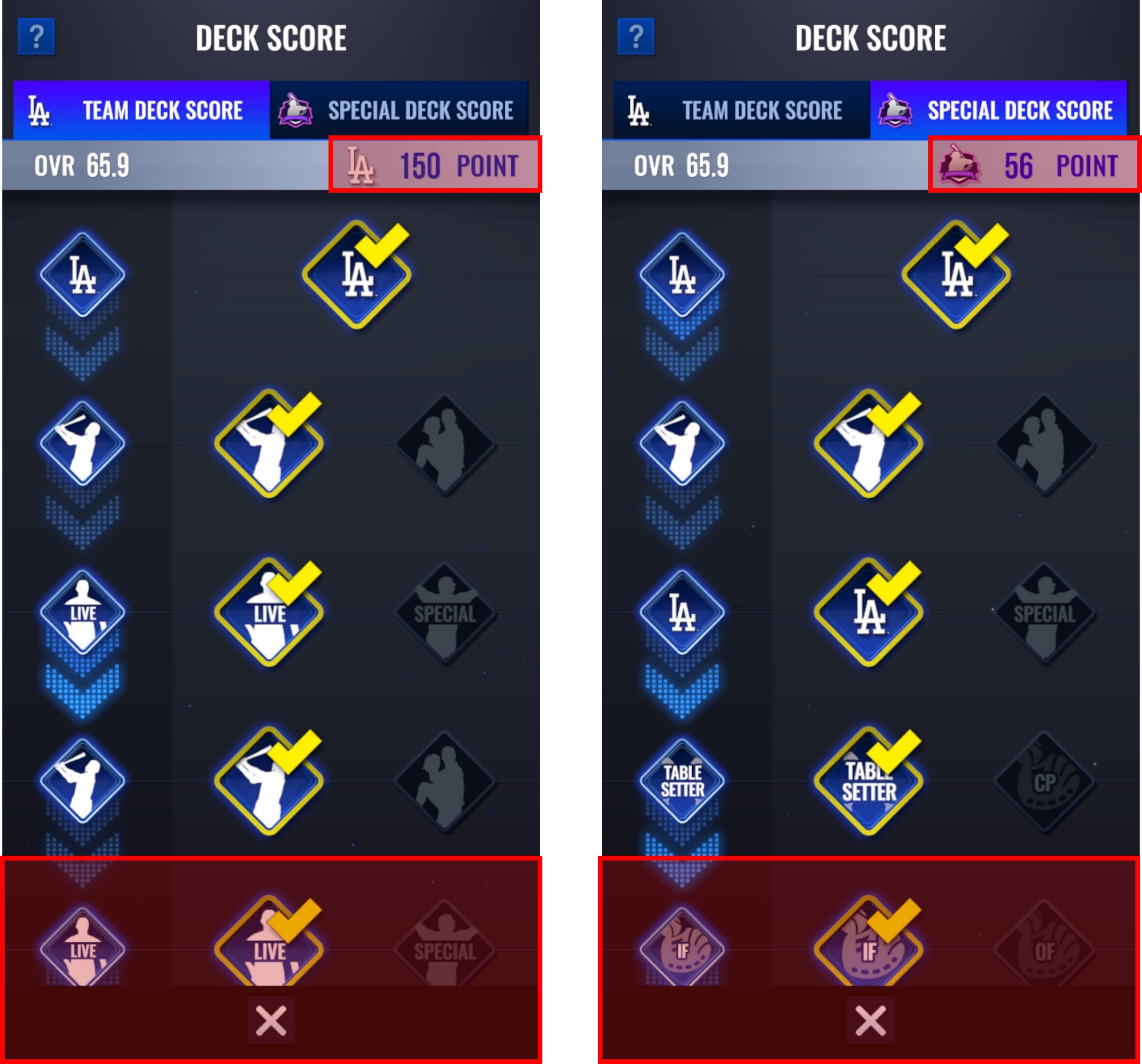 · 라인업에 등록된 모든 스페셜 선수들의 덱 스코어의 합에 따라 다양한 효과를 팀 전체에 적용할 수 있습니다.