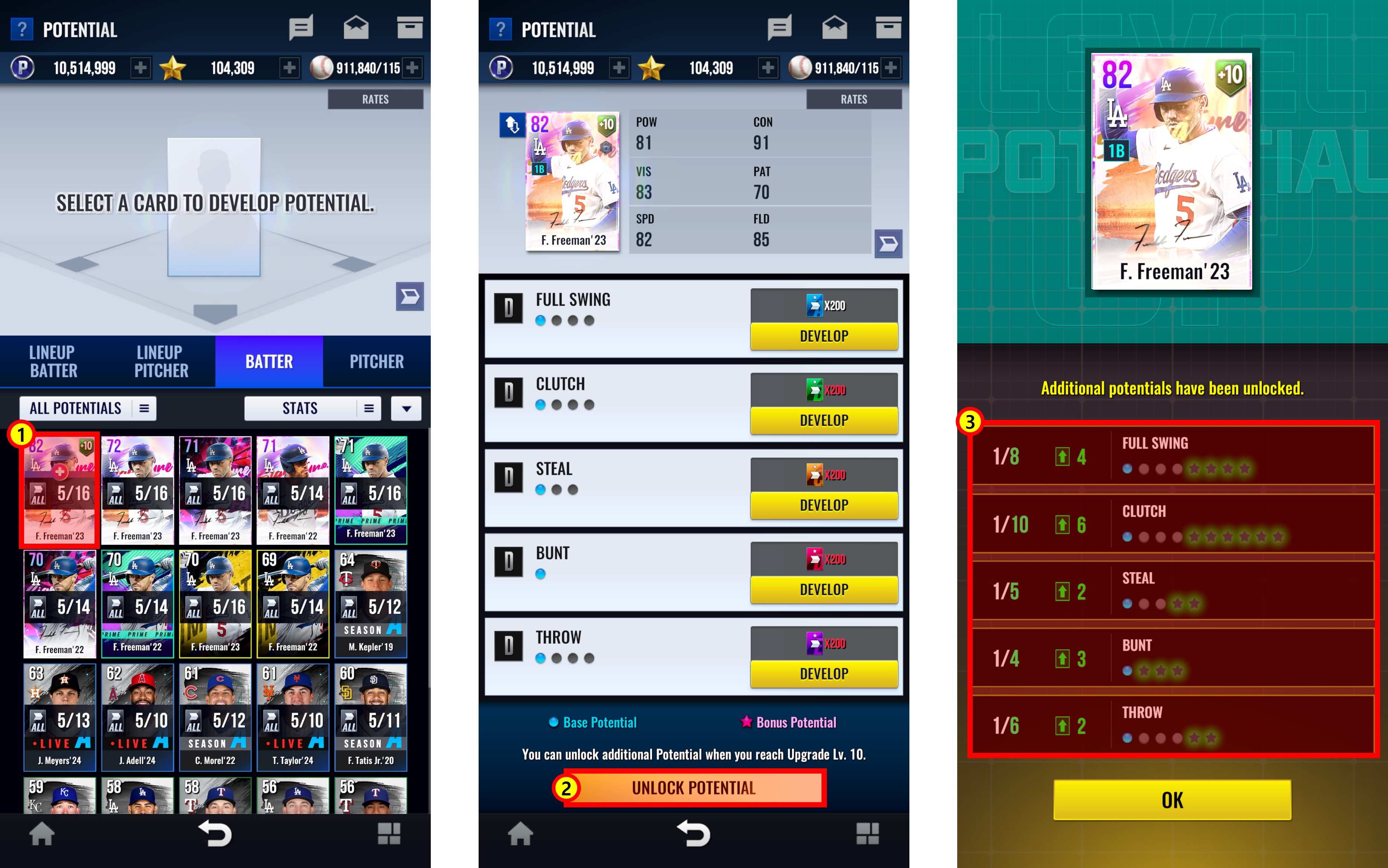 ③ 일괄 개방된 추가 잠재력을 확인할 수 있습니다.
