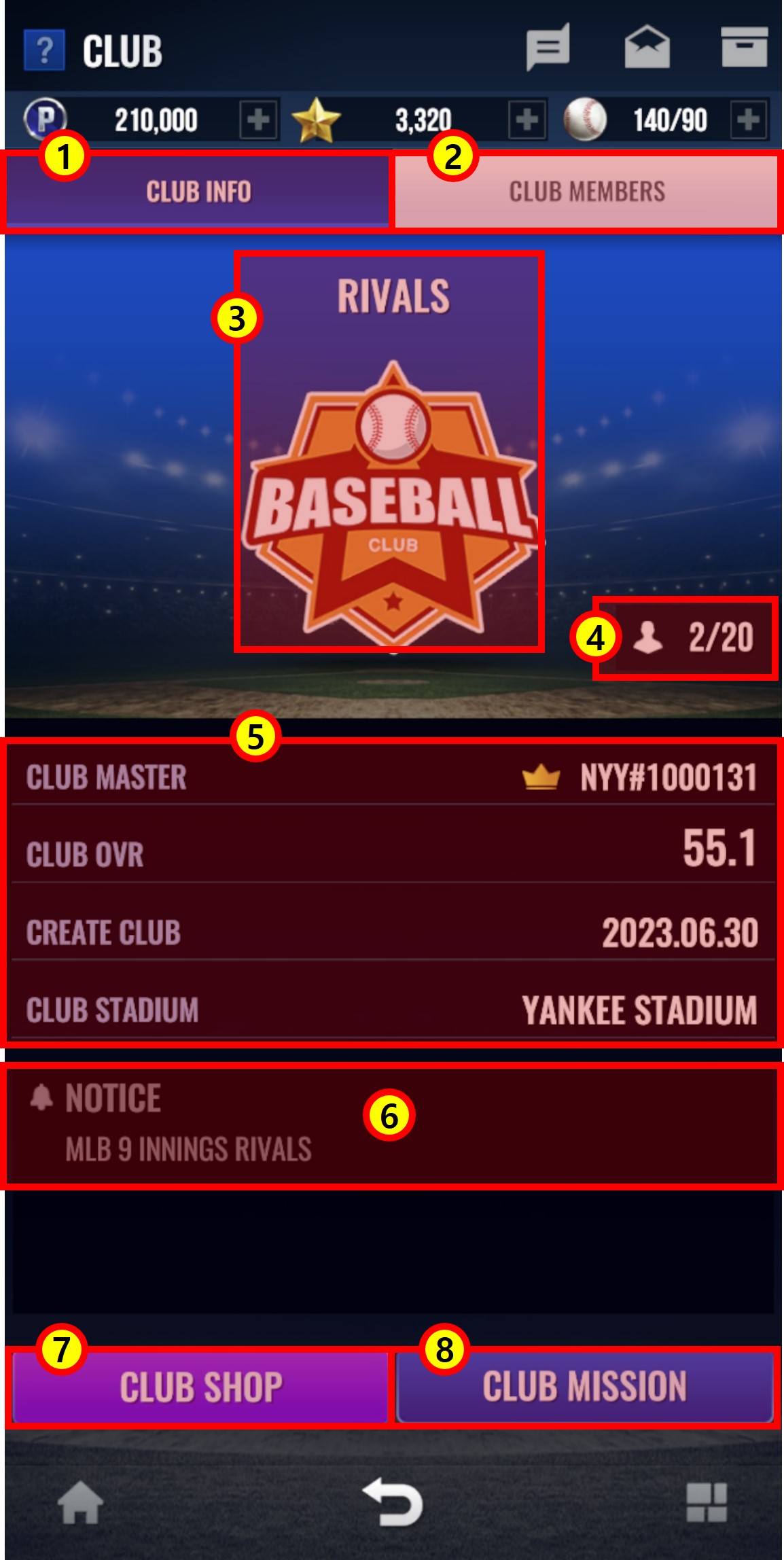 ⑤ 클럽 정보를 확인할 수 있습니다.