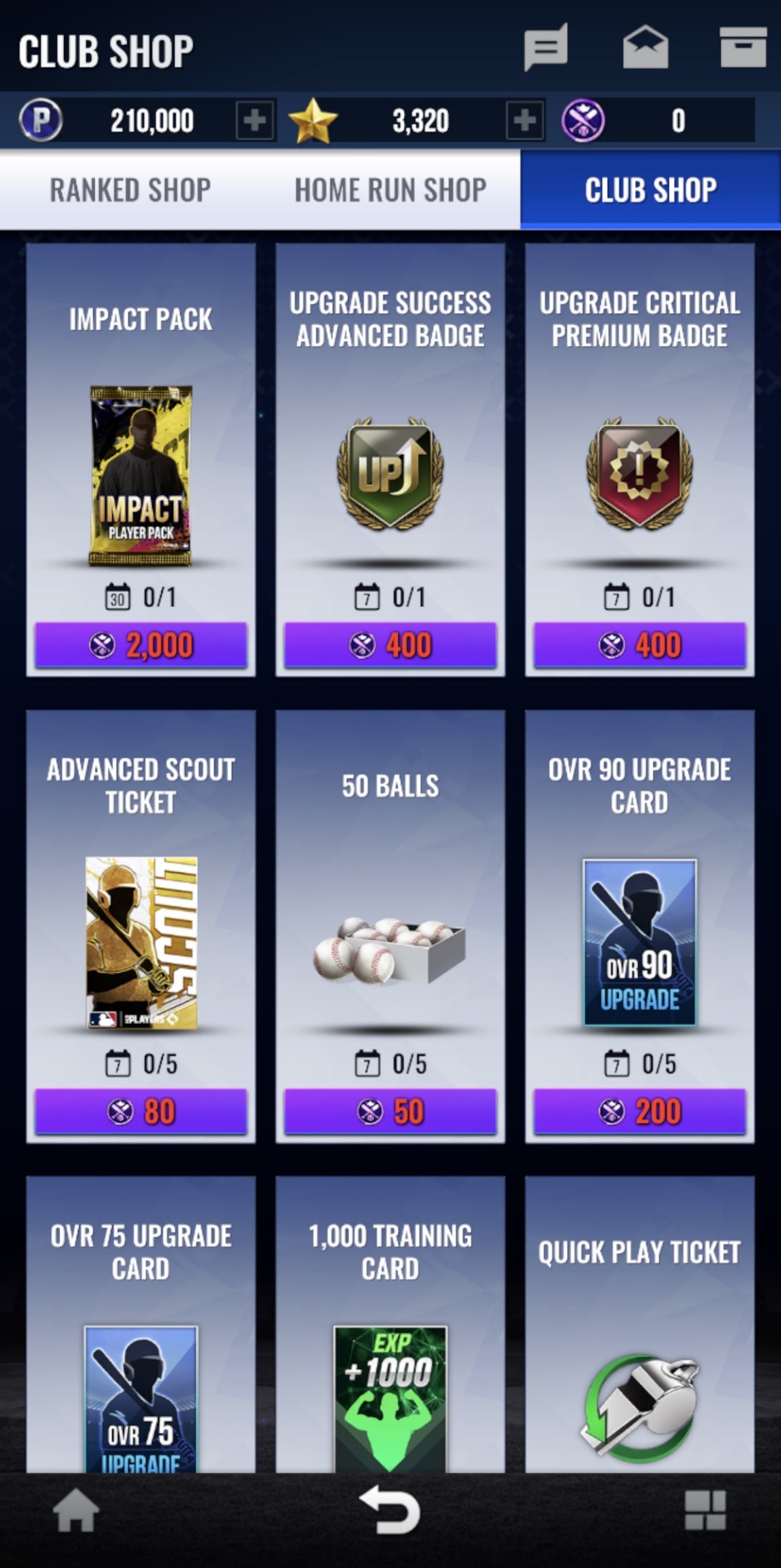 ⑦ 클럽 상점을 이용할 수 있습니다.