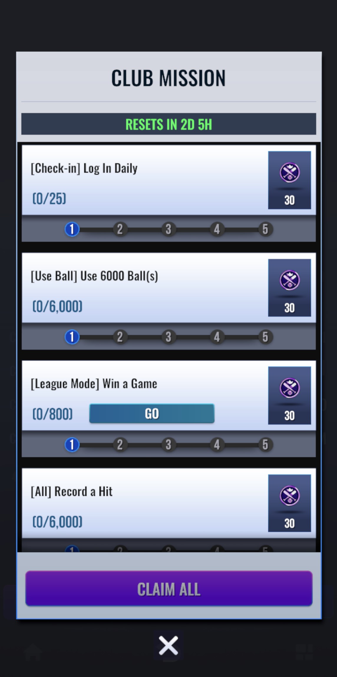 - 미션 조건 완료 시 모든 클럽원들이 동일한 보상을 획득합니다.