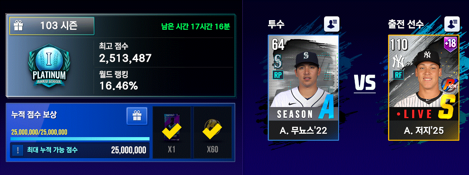 랭킹슬러거 점수 250만을 넘으면 추가 보상을 얻을수 있습니다.