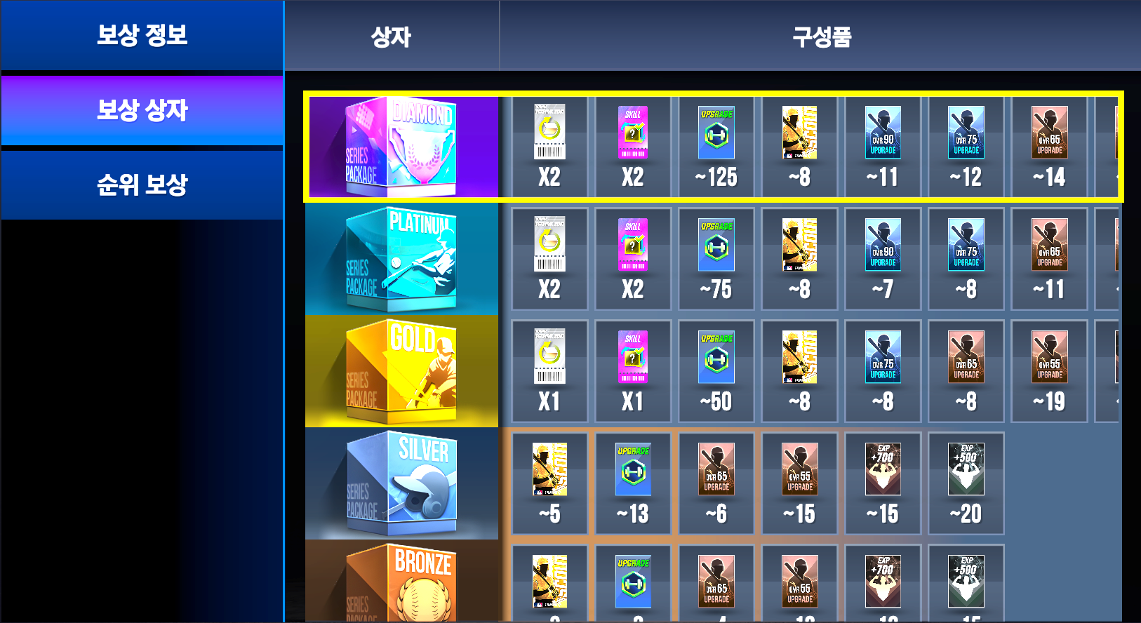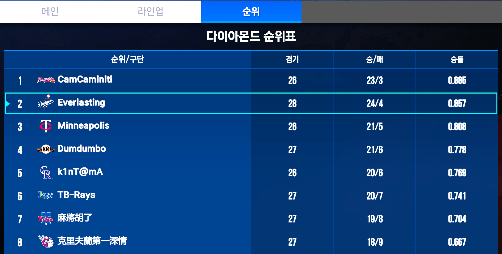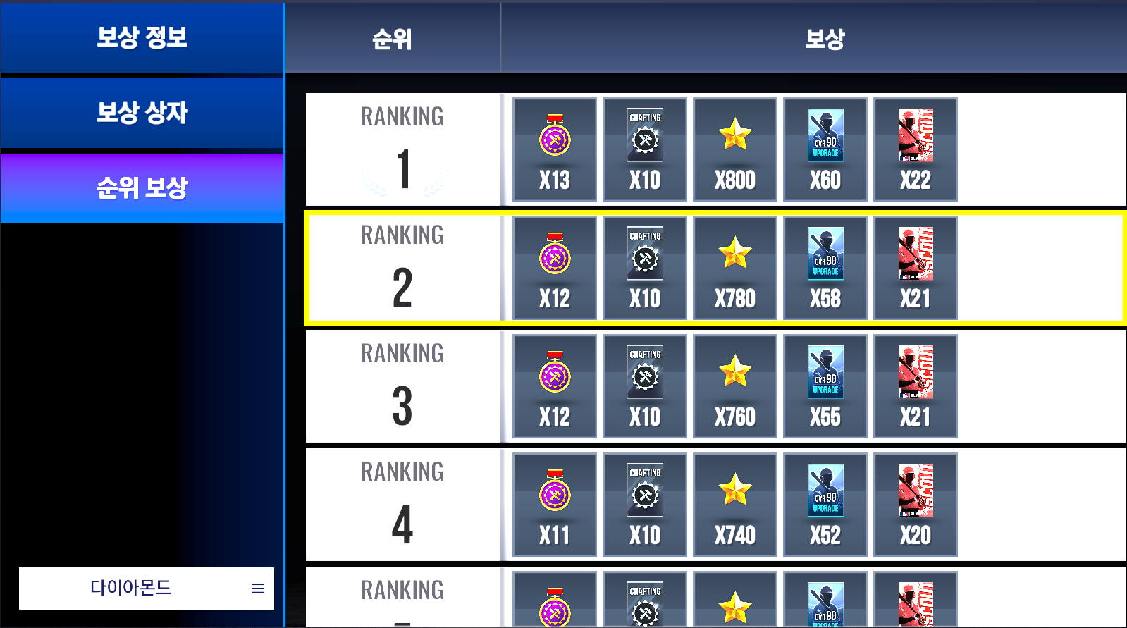 현재 진행중인 라이벌 시리즈 다이아 리그 입니다.