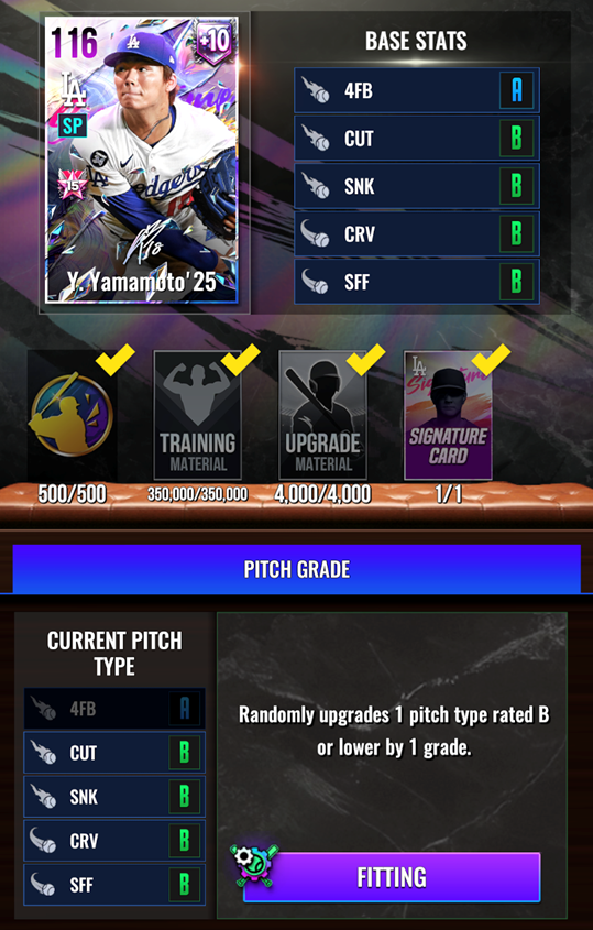 ※ HOF의 경우, 대상 카드가 타자라면 HOF 타자 카드, 투수라면 HOF 투수 카드를 재료로 등록할 수 있습니다.