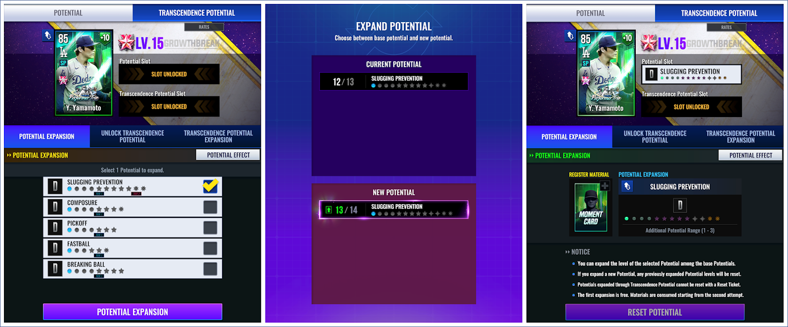 - 첫 확장은 무료이며, 이후에는 재료를 소모하여 초월 잠재력 확장을 재설정할 수 있습니다.