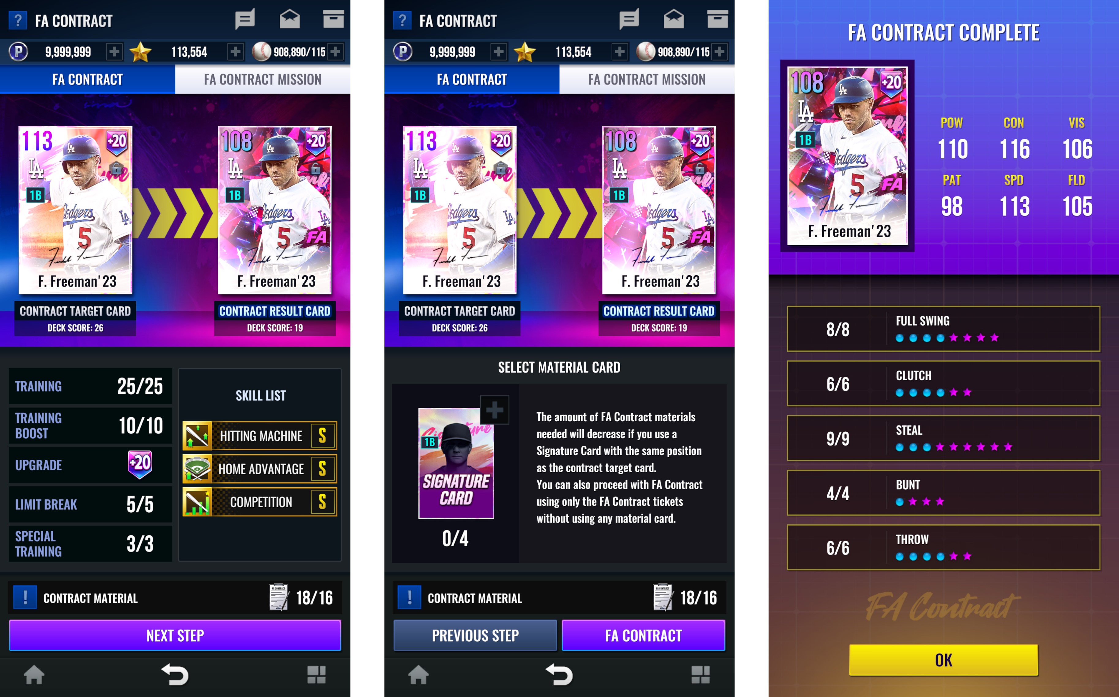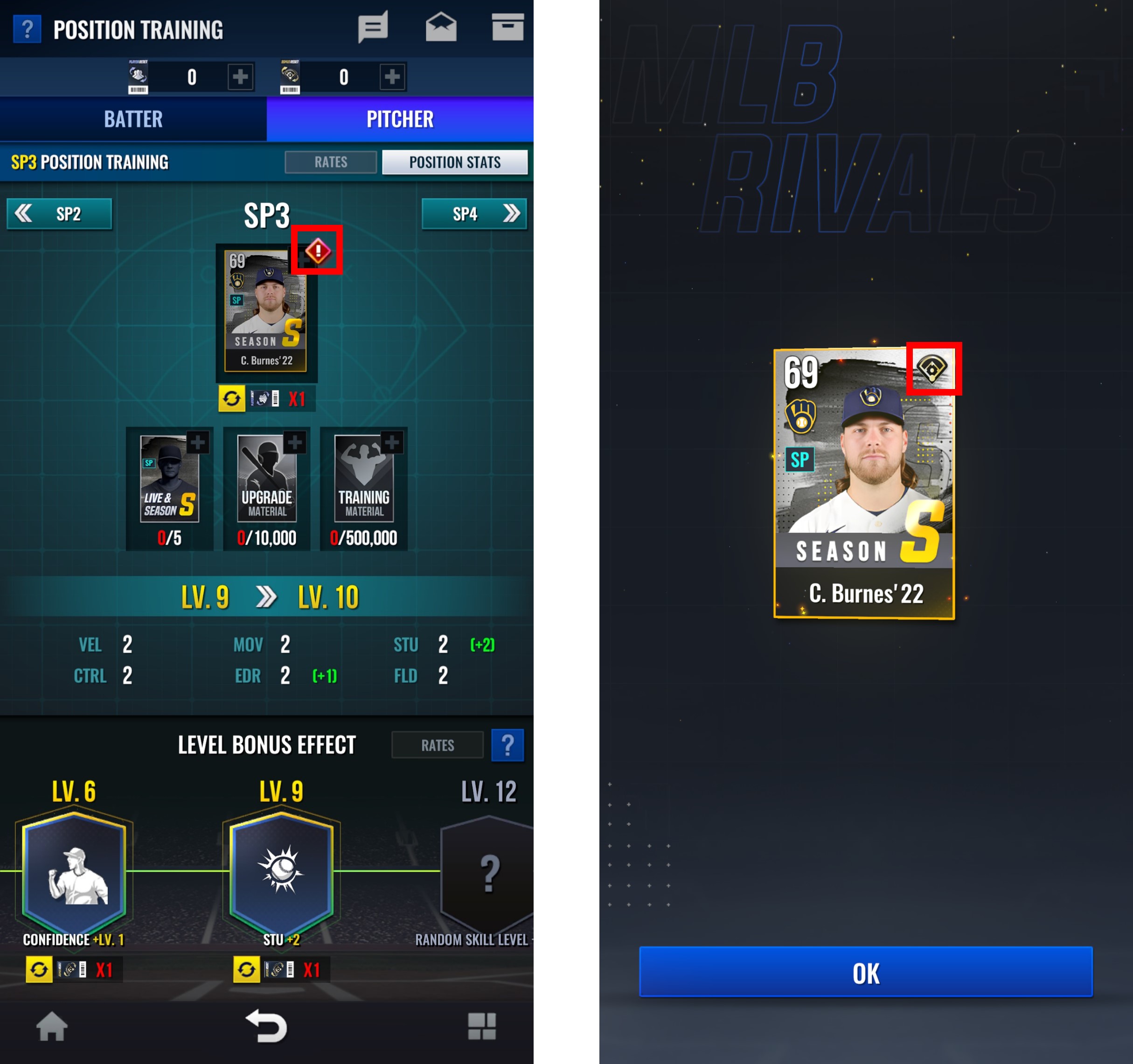 ※ 스페셜 카드에서 FA 선수로 성장 이전 시 초과되는 한계 돌파, 특훈 경험치는 소멸됩니다.