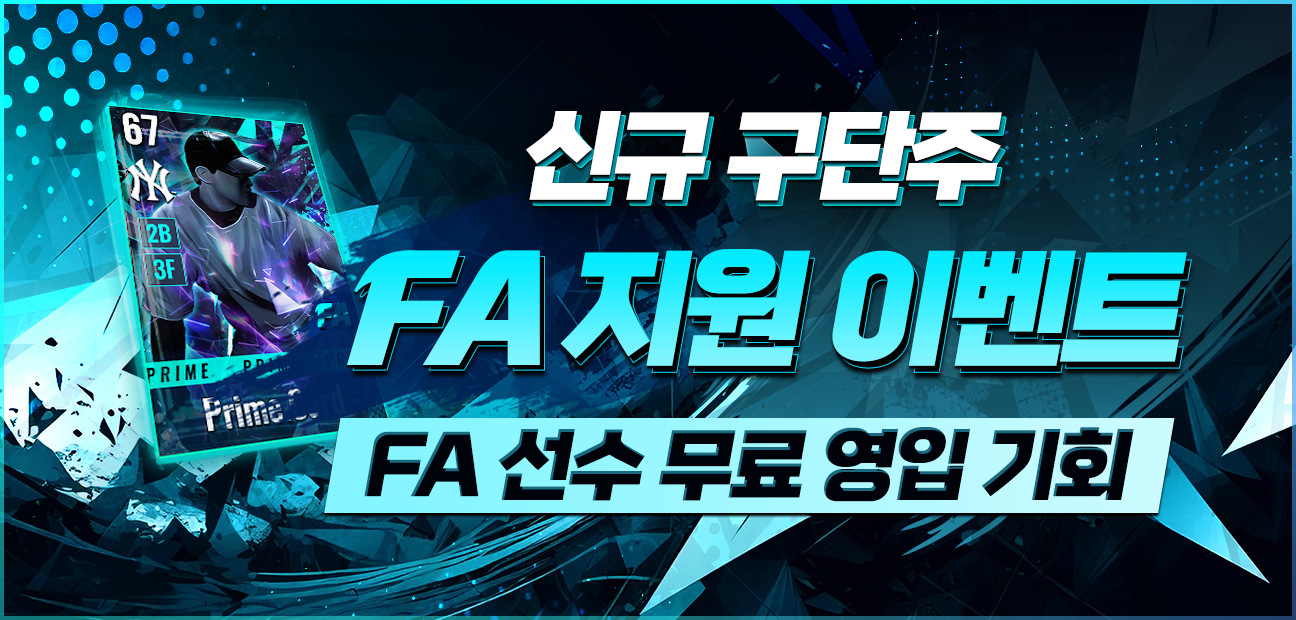 > 각 포지션별 선정된 FA 카드 중 1종을 선택하여 획득할 수 있는 FA 선수 획득 이벤트입니다.