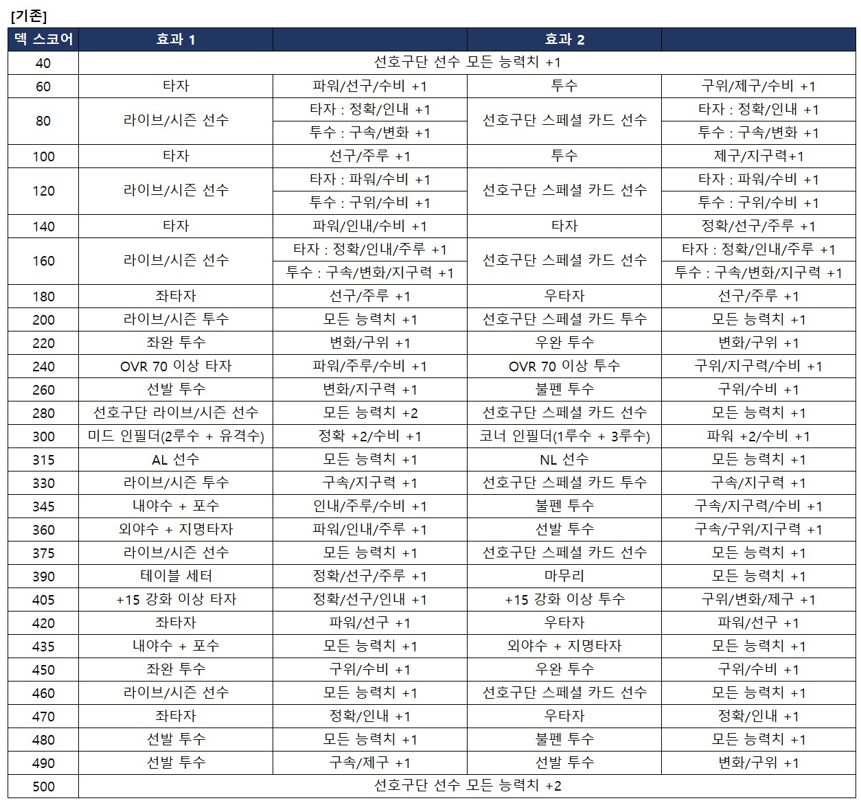 - 덱 스코어 효과가 아래와 같이 개편 및 신규 추가 됩니다.