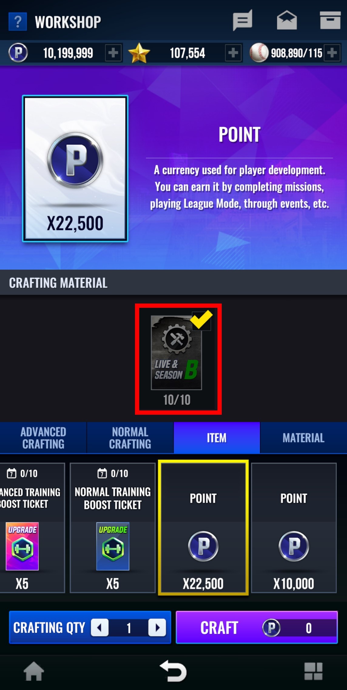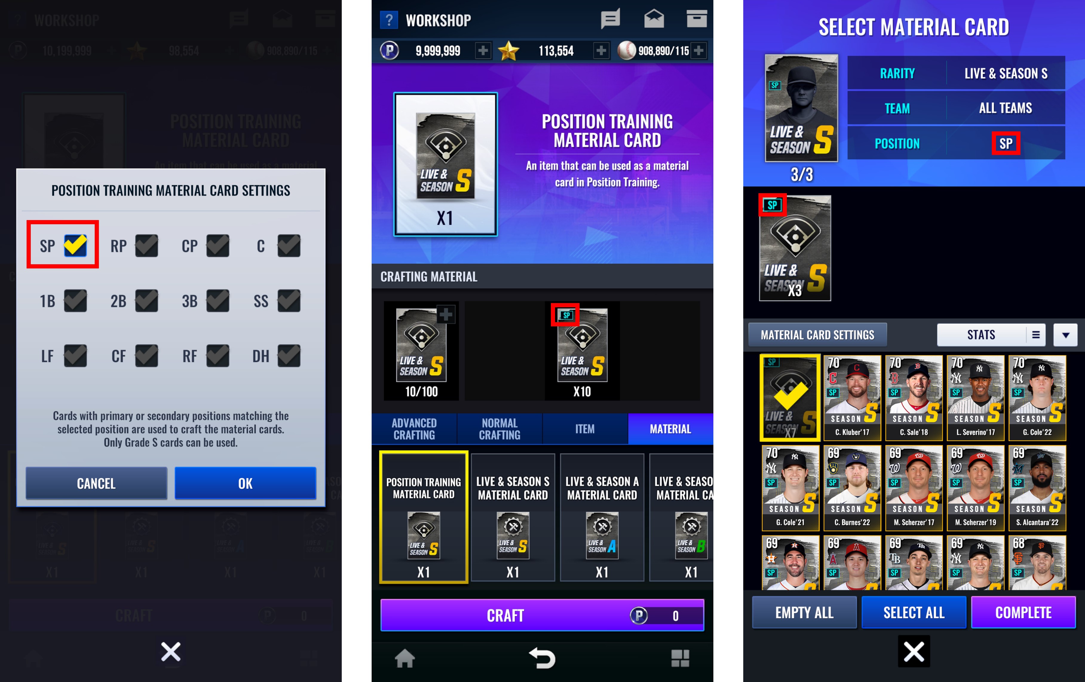 > 각 포지션의 라이브&시즌S 카드로 해당 포지션의 포지션 훈련 재료 카드를 제작할 수 있습니다.