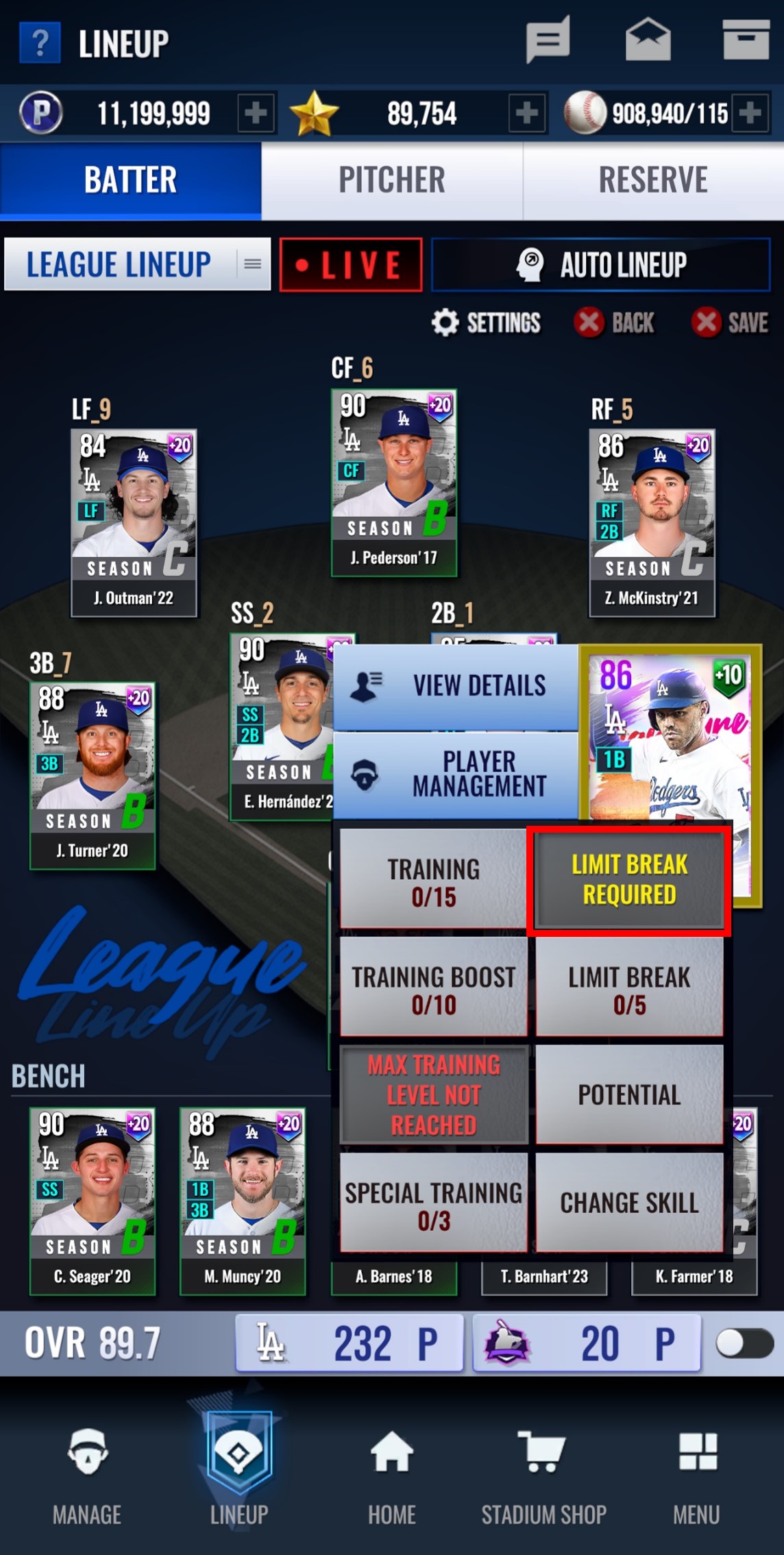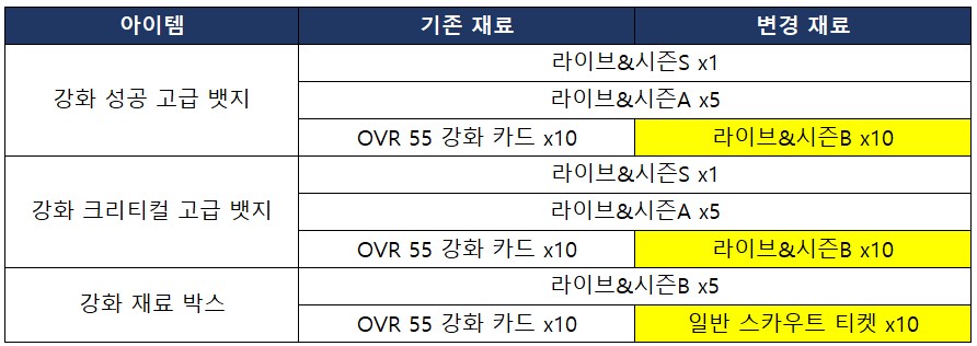 - 선수 카드의 한계 돌파 잔여 횟수가 남아 있을 경우 라인업 선수 육성 메뉴의 강화 상태 문구가 개선되었습니다.