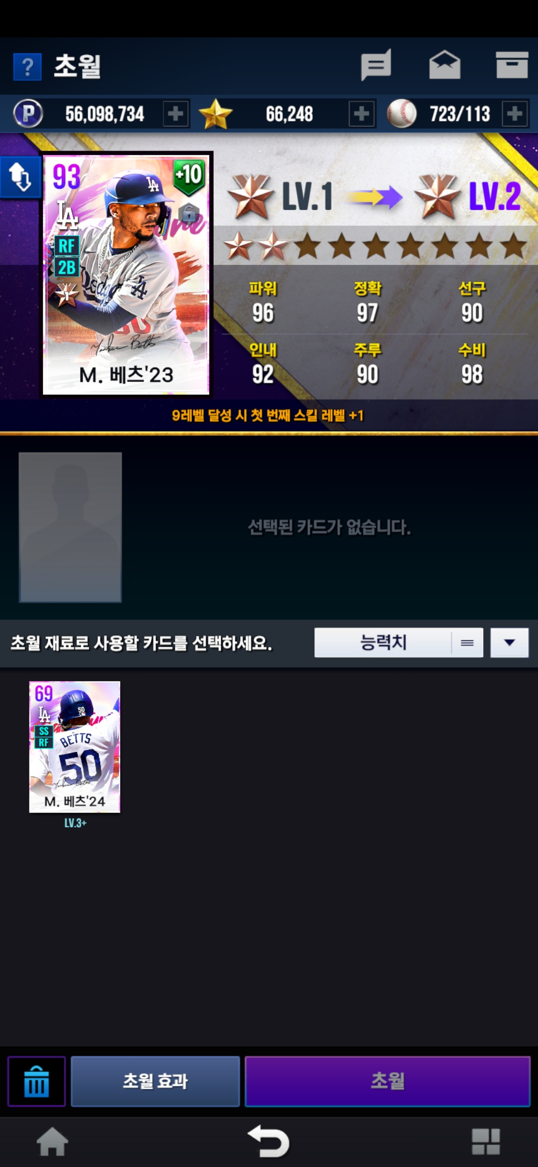베츠 23 시그니쳐카드에 베츠23프라임카드를 한계돌파 재료로 사용하려하는데 안 뜨네요??